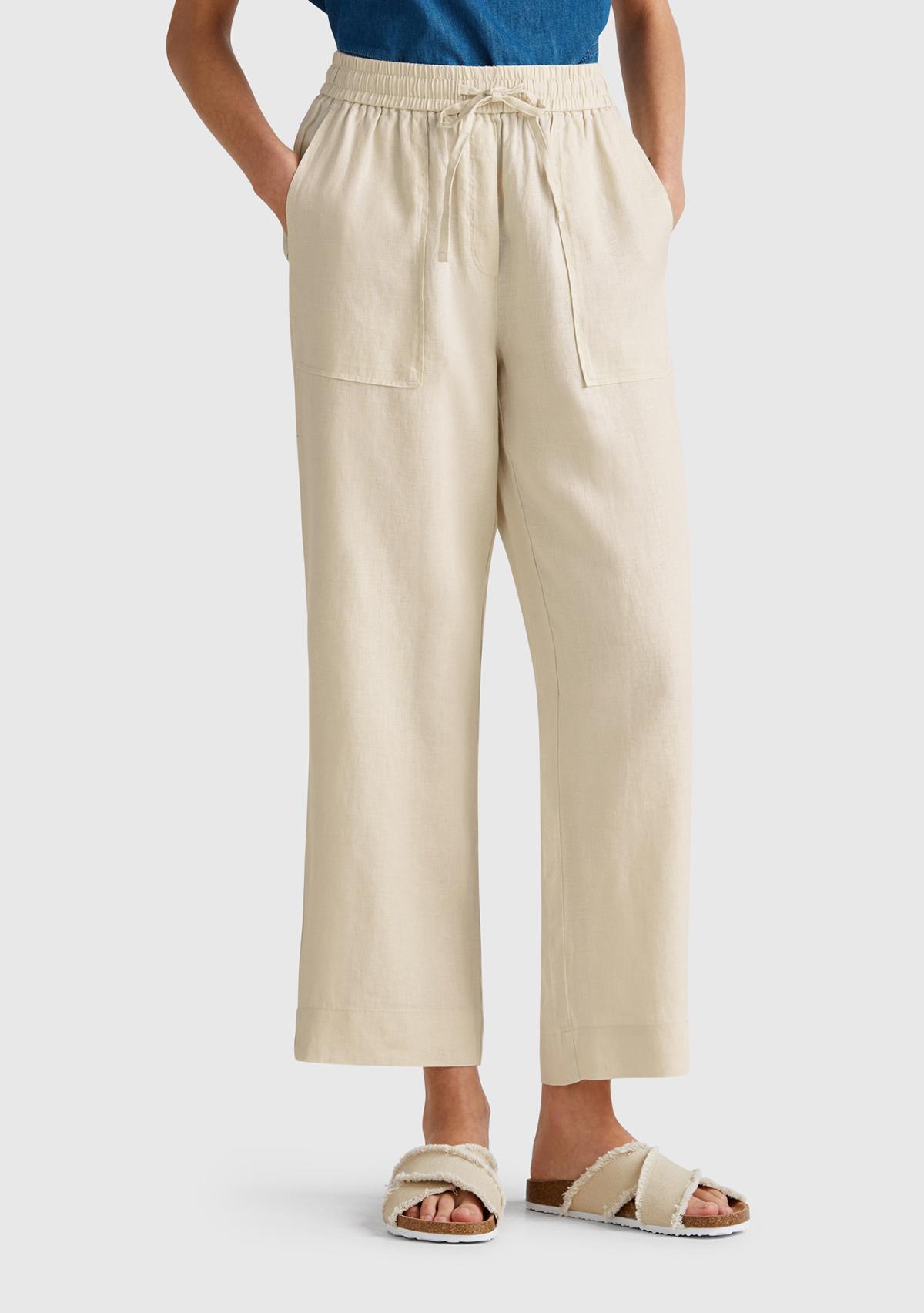 Kadın Taş Rengi %100 Keten Büzgü İpli Cepli Pantolon