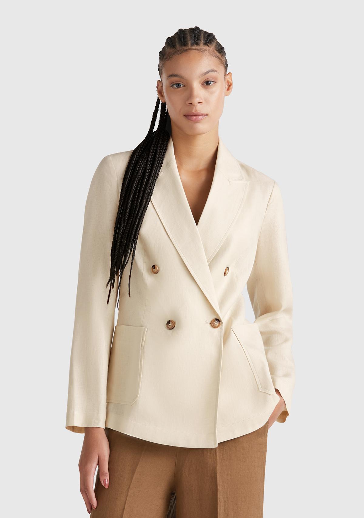 Kadın Taş Rengi %100 Keten Ceket