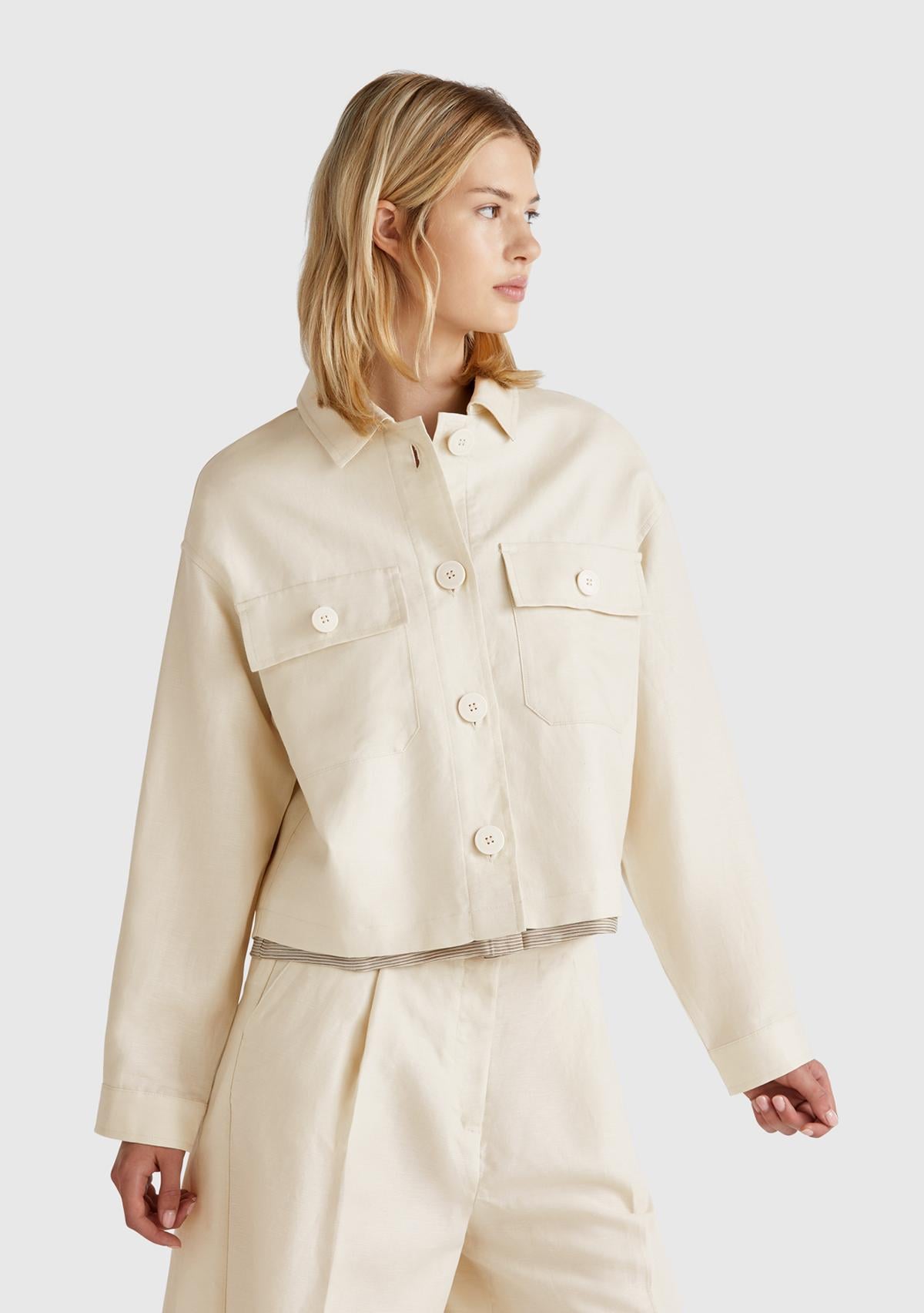Kadın Taş Rengi Keten Karışımlı Ceket