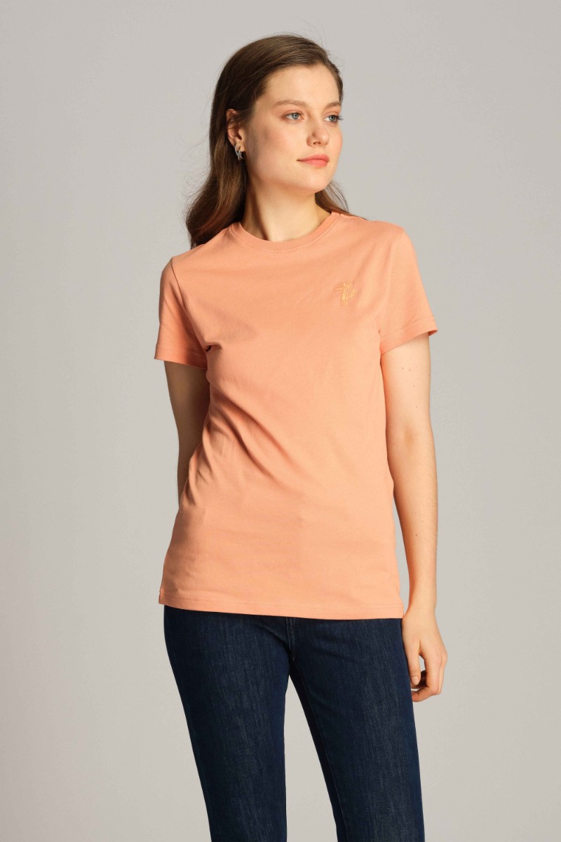 Bisiklet yaka, önde figür nakışlı t-shirt. / Fotoğraflardaki model S beden giymektedir.
