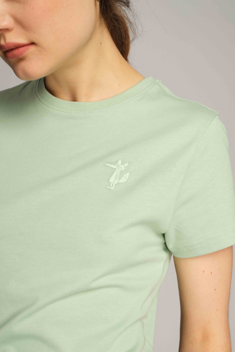 Bisiklet yaka, önde figür nakışlı t-shirt. / Fotoğraflardaki model S beden giymektedir.