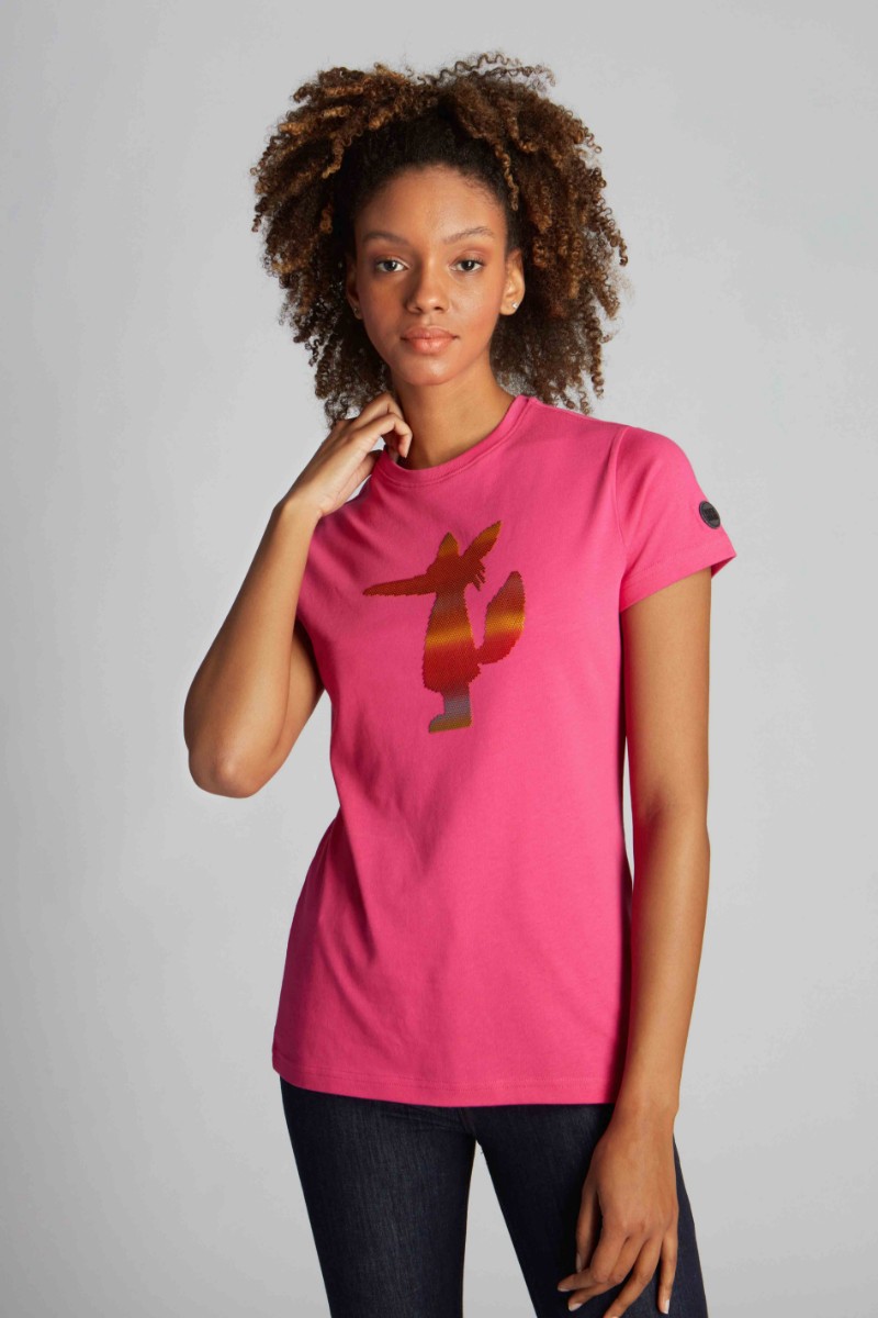 Bisiklet yaka, önde kabartmalı figür baskılı t-shirt. / Fotoğraflardaki model S beden giymektedir.