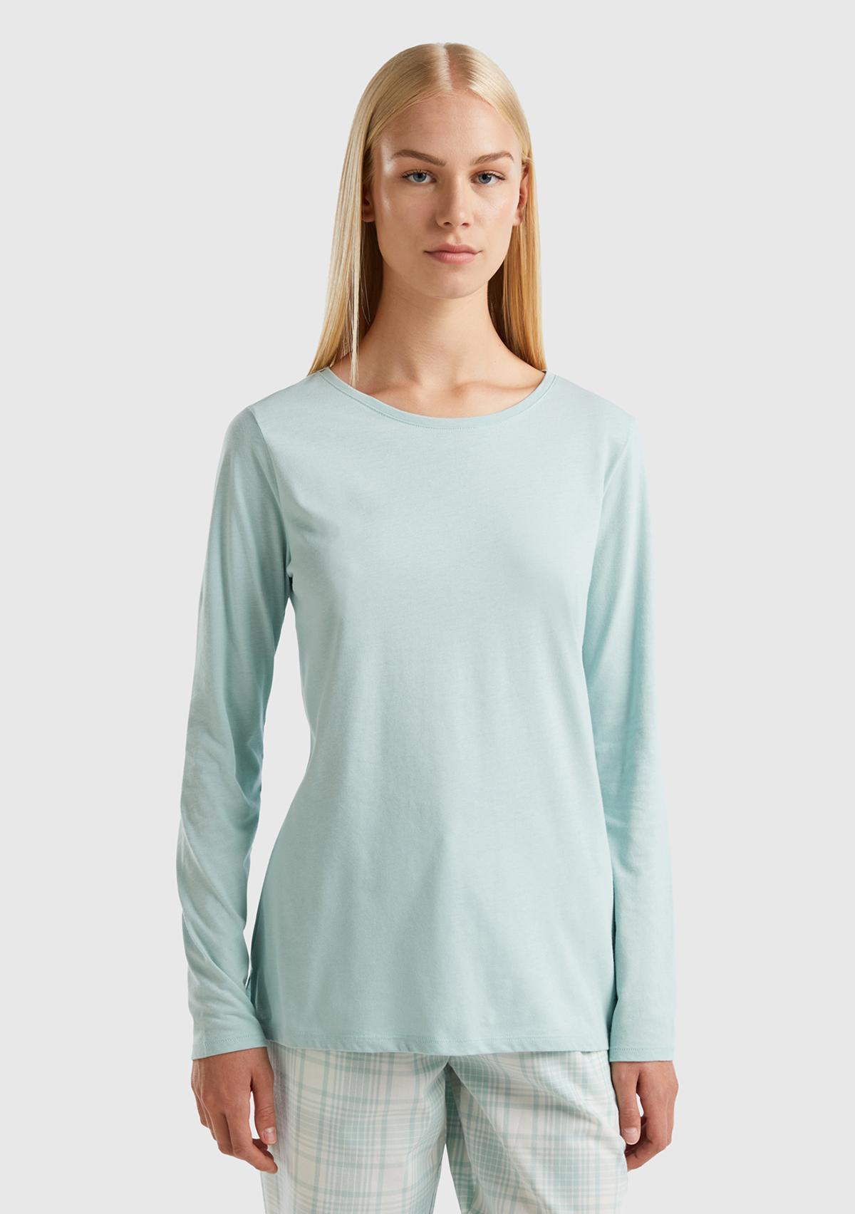 Kadın Turkuaz Bisiklet Yaka T-Shirt