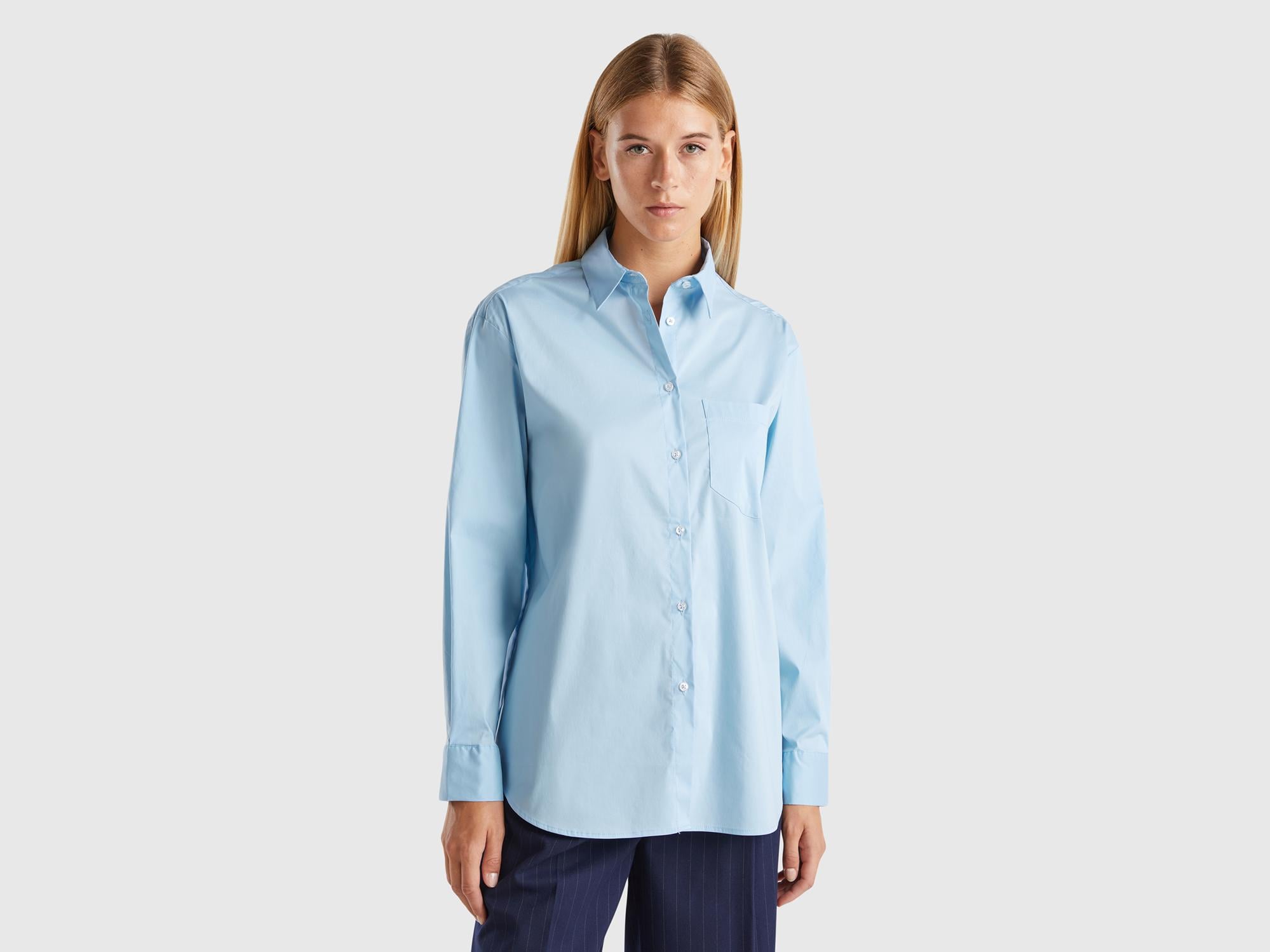 Kadın Turkuaz Pamuk Karışımlı Uzun Kollu Sivri Yaka Poplin Gömlek