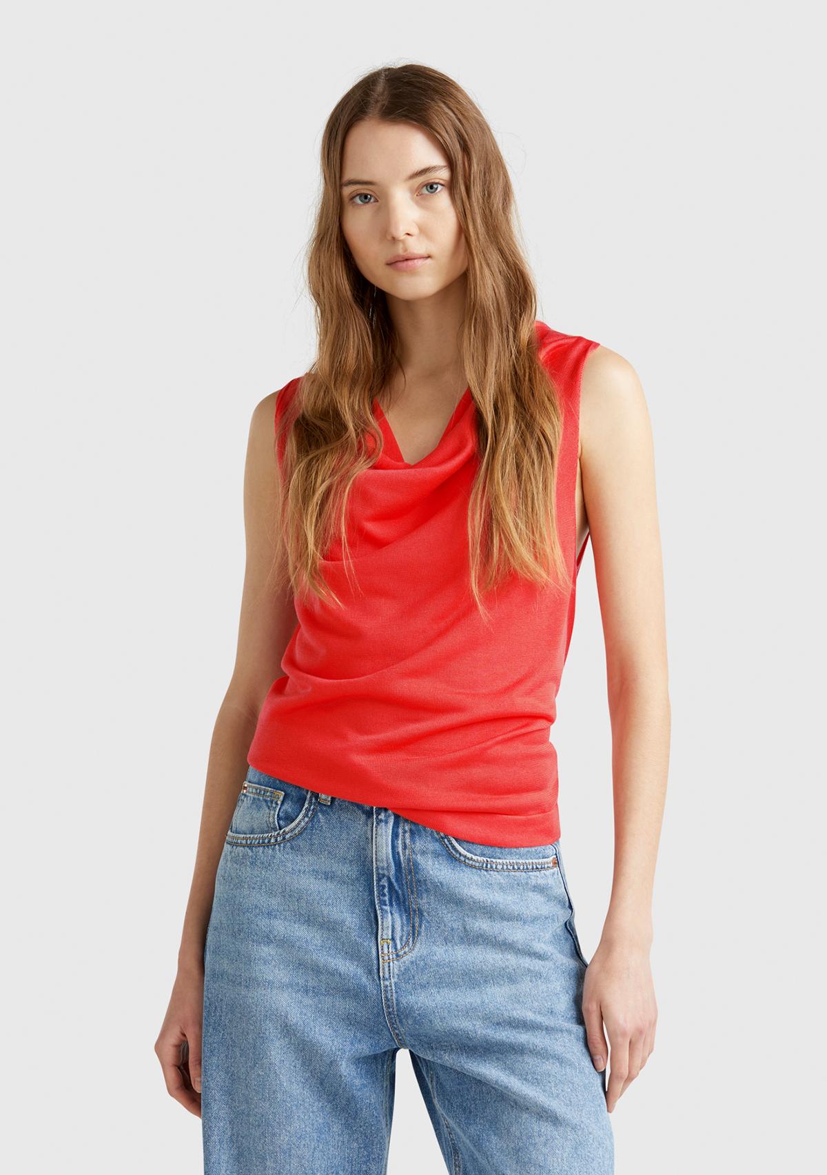 Kadın Turuncu %100 Liyosel Kolsuz Regular Fit Kazak