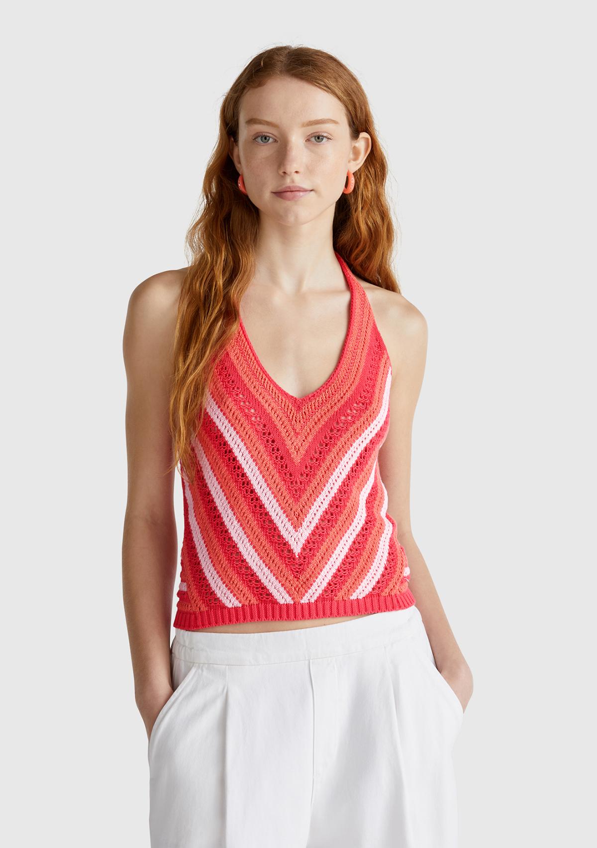 Kadın Turuncu Koton Karışımlı Halter Yaka Boyundan Bağlamalı Triko Atlet