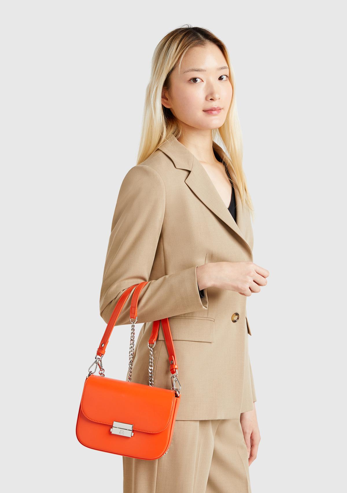Kadın Turuncu Metal Klipsli Çift Saplı Mini Omuz Çantası