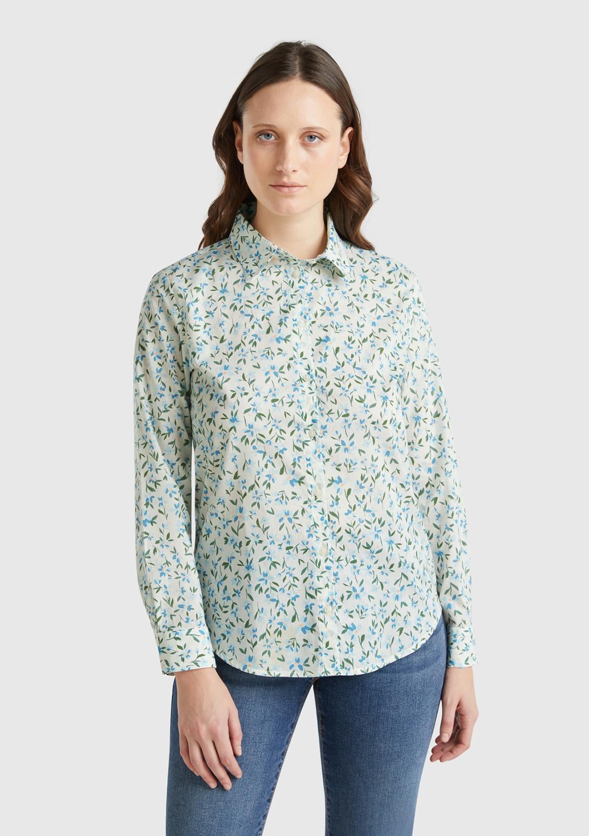 Kadın Yeşil %100 Pamuk Desenli Manşetli Regular Fit Müslin Gömlek