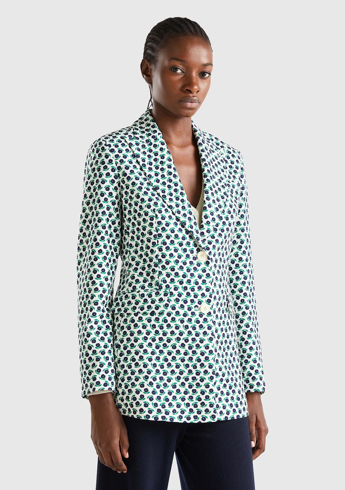 Kadın Yeşil Mix Çiçek Desenli Ceket