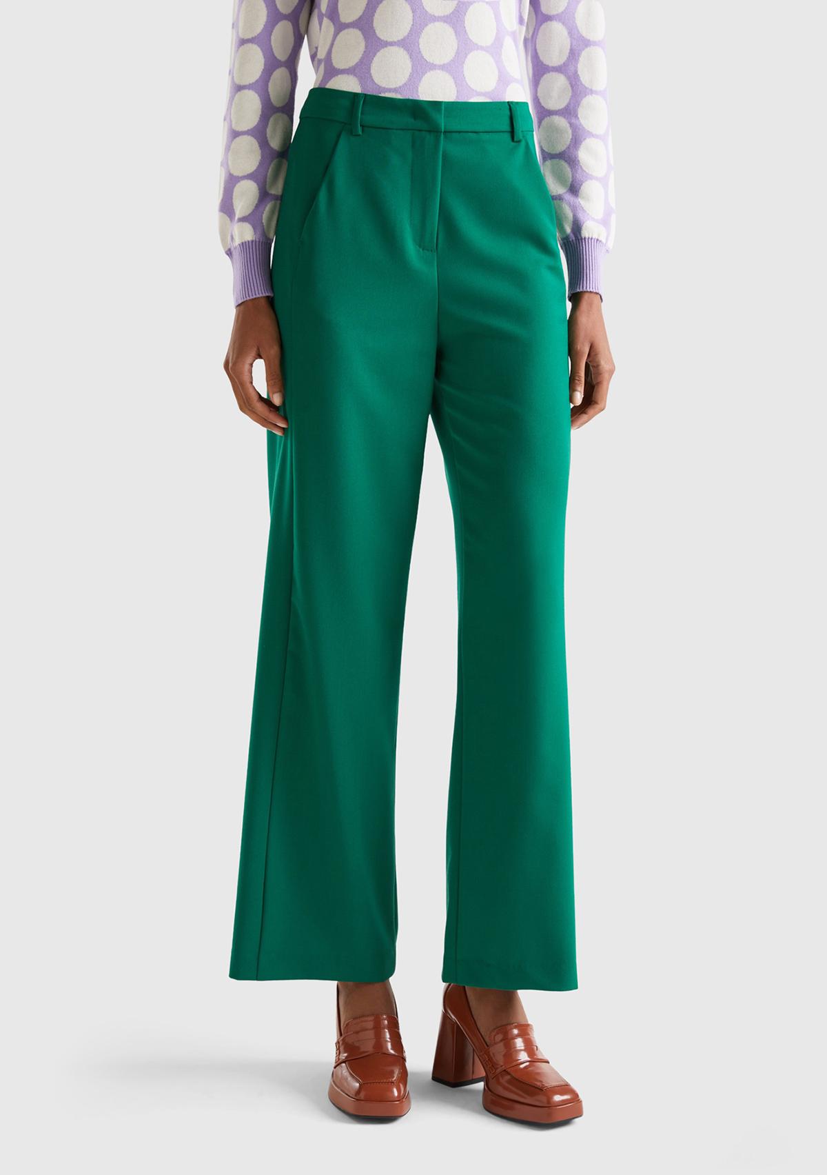 Kadın Yeşil Poliviskoz Regular Fit Düz Paça Pantolon