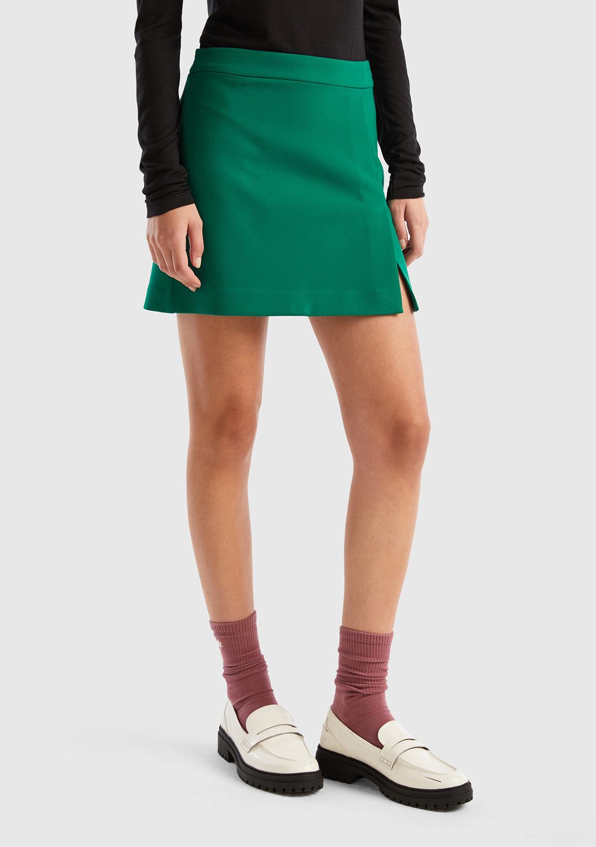 Kadın Yeşil Poliviskoz Yandan Fermuarlı Mini Etek
