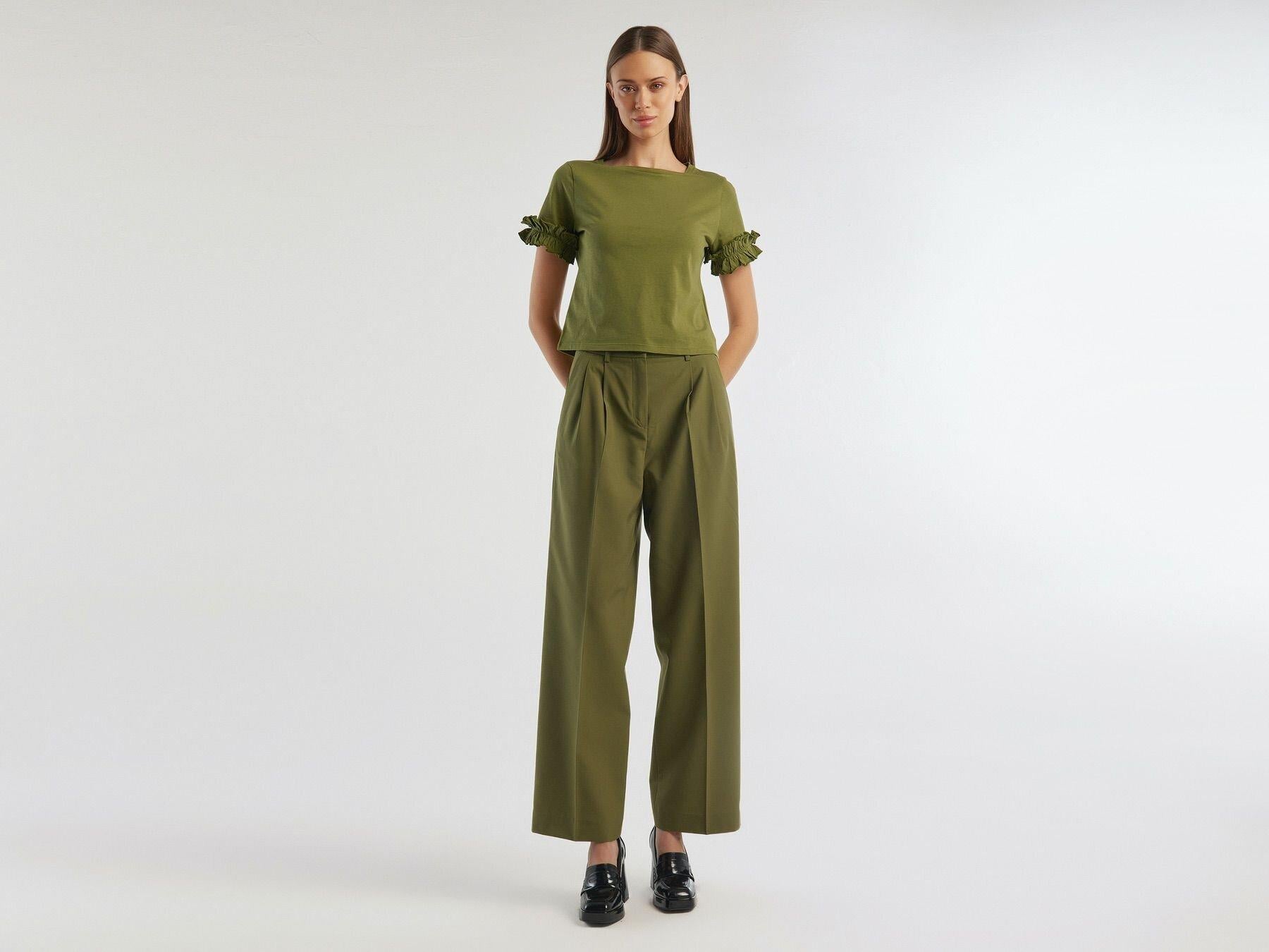 Kadın Zeytin Yeşili Poliviskoz Geniş Paça Pantolon