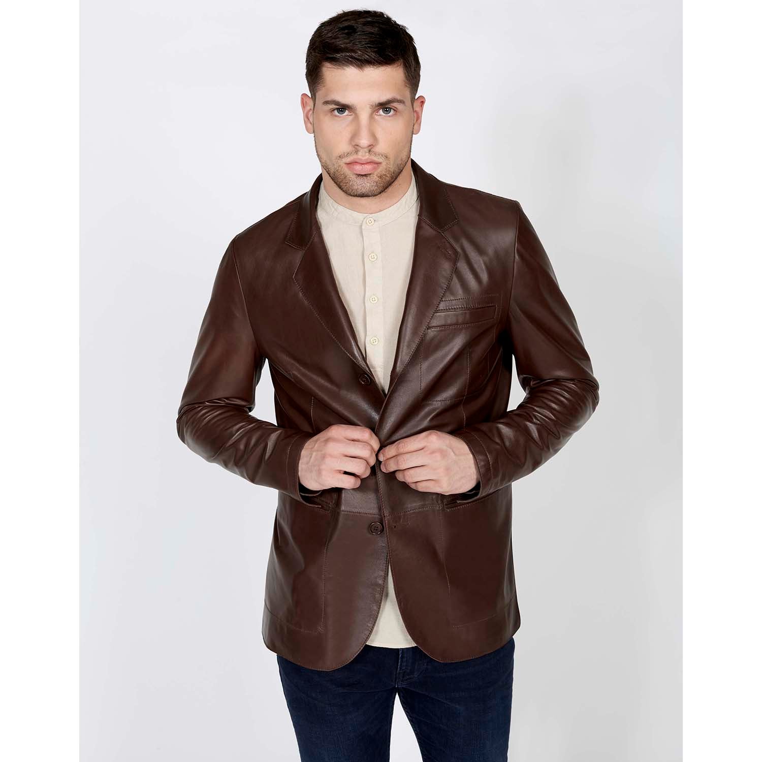 Erkek blazer deri ceket Yakalı ve önden düğme kapamalı Önde üç adet üstten girişli cebi mevcuttur Kollarında düğme manşet detayı kullanılmıştır Astarında düğmeli cep detayı vardır %100 koyun derisinden ve astarlı çalışılmıştır