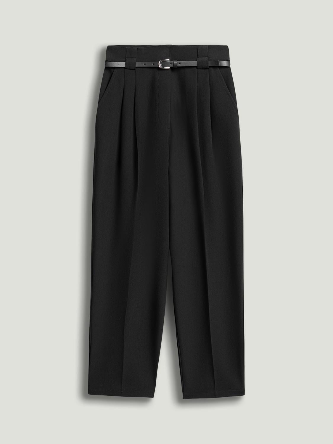 Modern bir dokunuşa sahip klasik kemer detaylı bu pantolon, şık bir silüet için normal kesimde dokuma kumaştan üretilmiştir. Orta bel, kopçalı kapama ve yan cepleriyle hem rahatlık hem de işlevsellik sunar. Önünde çift pile ve oval tokalı kemer detayı bulunan bu model, zamansız dikim anlayışını çağdaş zarafetle birleştirir. Ofis giyimi, resmi davetler veya şık günlük görünümler için idealdir. Kalıp: Regular Fit Astar: Astarsız