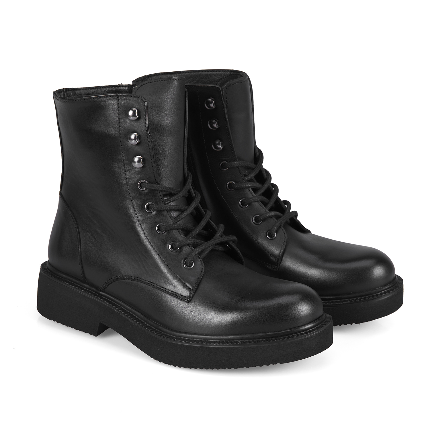 %100 deri, deri iç tabanlı, tekstil astarlı, içten fermuarlı, termo tabanlı, bağcıklı kadın postal. Taban yüksekliği 4 cm. Konç yüksekliği 15cm %100 Dana derisinden üretilmiştir.-%100 deri, deri iç tabanlı, tekstil astarlı, içten fermuarlı, termo tabanlı, bağcıklı kadın postal. Taban yüksekliği 4 cm. Konç yüksekliği 15cm %100 Dana derisinden üretilmiştir.