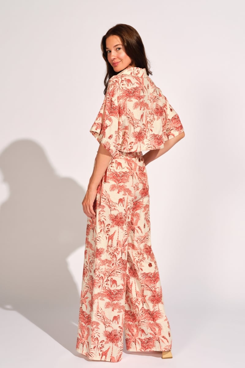 Dijital baskılı keten bol pantolon.%69 Cotton %31 LinenBu ürünü 30 derecede, benzer renklerle, tersten yıkayınız ve gölgede kurutunuz. Baskı veya nakış olan bölgeye ütü temas ettirmeyiniz, bu bölge tersten ütülenebilir.