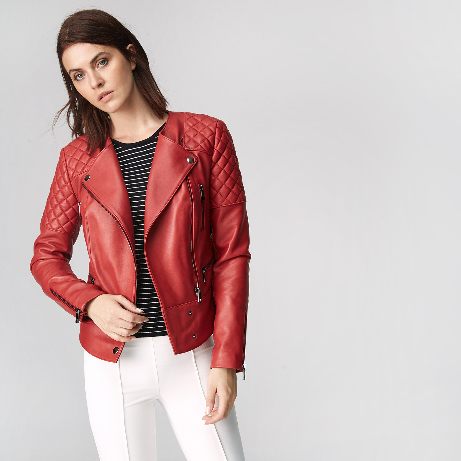 Bu ürün, et endüstrisinin yan ürünü olarak elde edilen ve sürdürülebilir yöntemler ile Leather Working Group Altın sertifikalı Desa tesislerinde tabaklanan deriler kullanılarak üretilmiştir. %100 Koyun derisinden üretilmiştir.-Spor şık stilinize farklı dokunuş. Jeanlerinizle kombinleyebileceğiniz muhteşem bir deri mont. Yakasız, yandan fermuar kapamalı. Fermuarlı iki adet göğüs cebi ve iki adet bel cebi vardır. Omuzlarda ince kapitone ve şık çıtçıt detaylarına yer verilmiştir. %100 Deri Manken Ölçüleri: 1.78 - 84/61/91