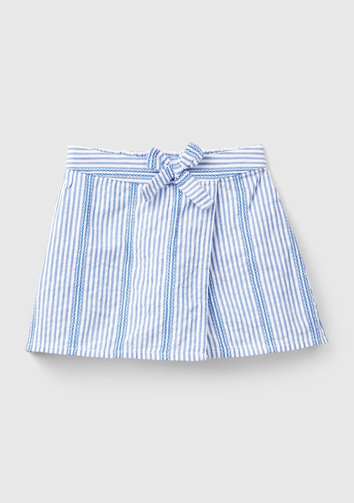 Kız Çocuk Açık Mavi Arkası Elastik Bantlı Önü Fiyonklu Çizgili Anvelop Şort