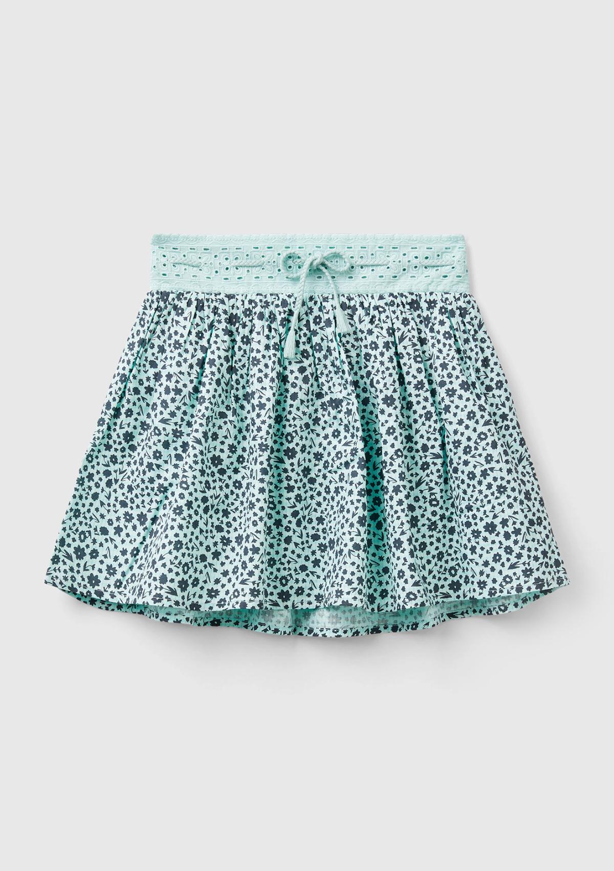Kız Çocuk Açık Mavi Mix Esnek Belli Büzgü İpli Desenli Etek