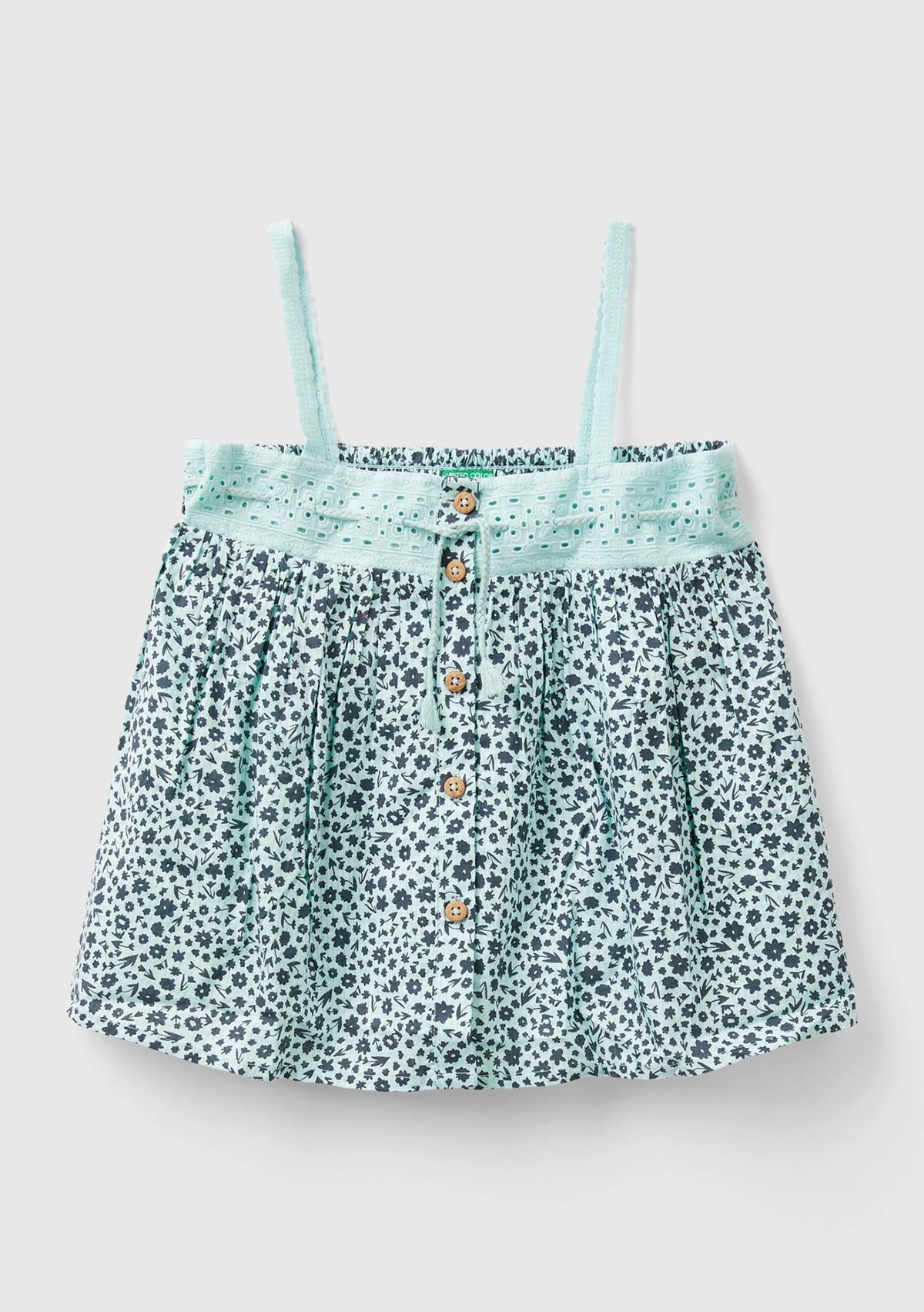Kız Çocuk Açık Mavi Mix Önü Düğmeli Arkası Elastik Bantlı Desenli Bluz