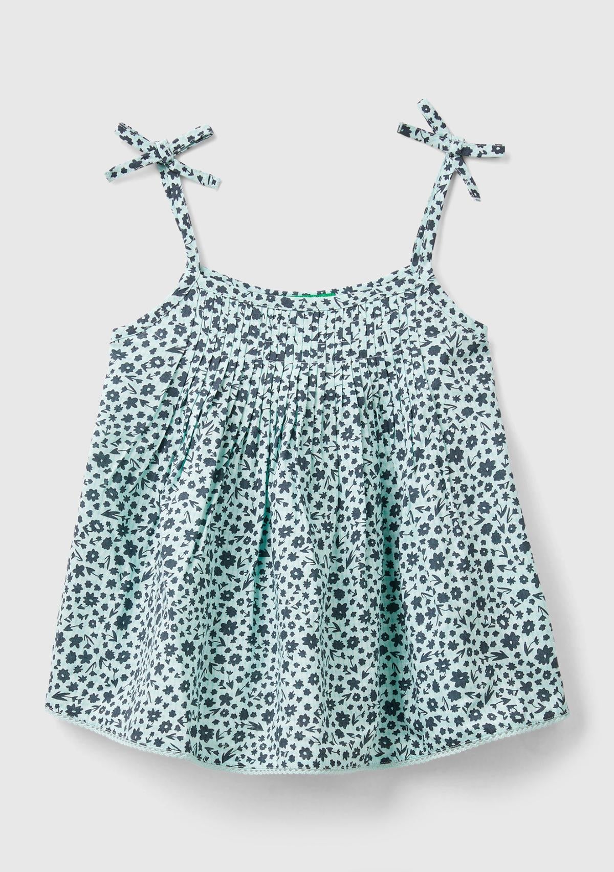 Kız Çocuk Açık Mavi Mix Önü ve Arkası Kıvrım Detaylı Fiyonk Askılı Desenli Bluz