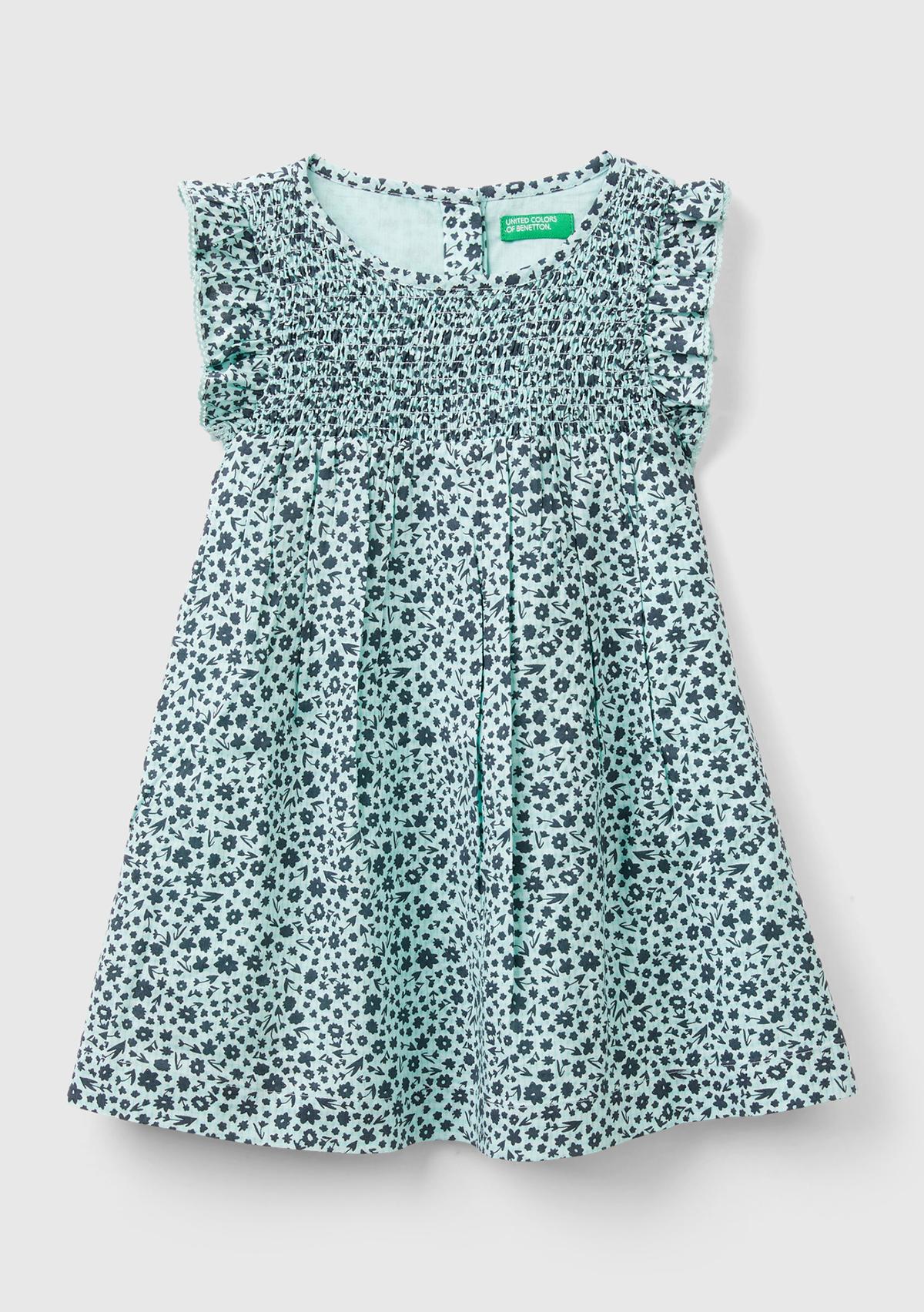 Kız Çocuk Açık Mavi Mix Tamamı Desenli Arkası Düğmeli Fırfır Detaylı Elbise