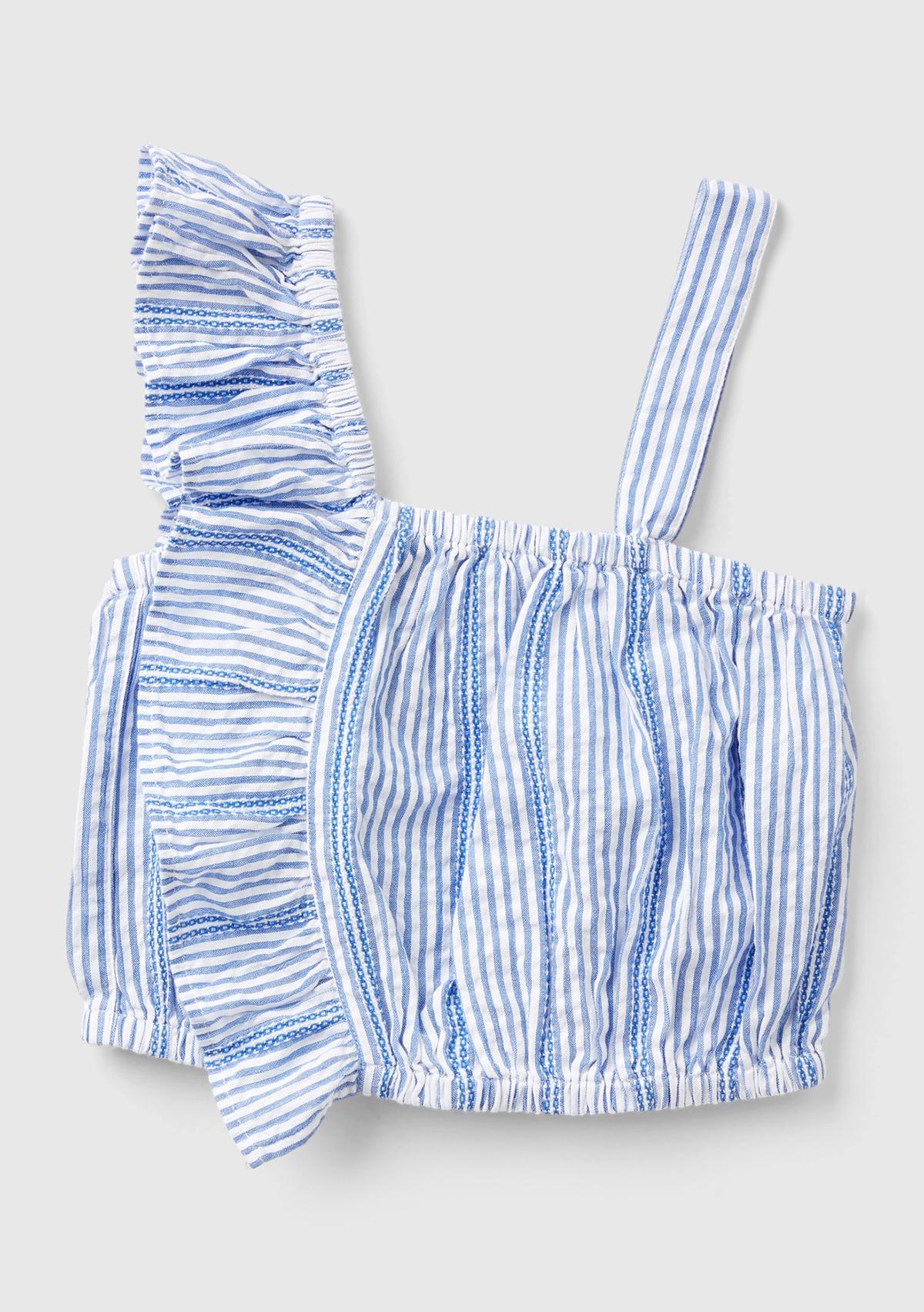 Kız Çocuk Açık Mavi Tek Omzu Askılı Fırfır Detaylı Çizgili Bluz