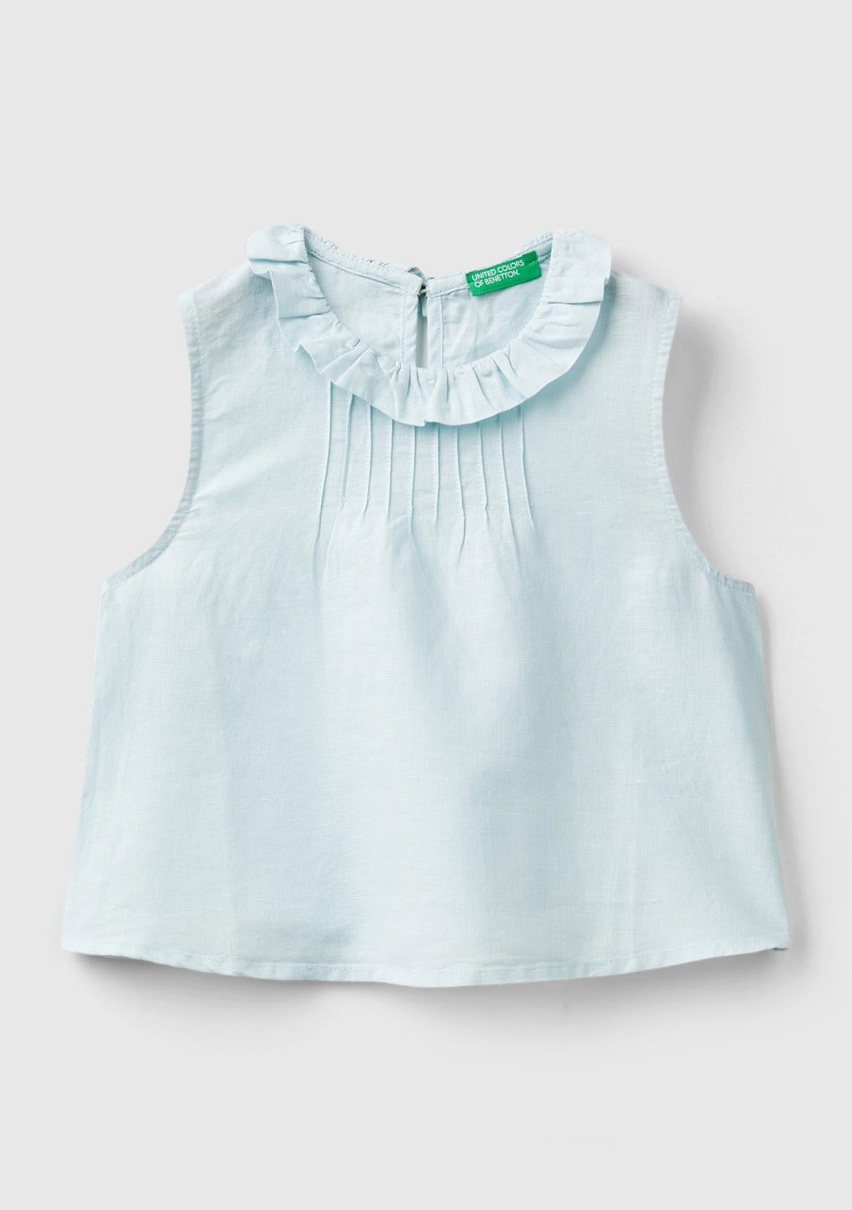 Kız Çocuk Açık Mavi Yakası Fırfırlı Kolsuz Bluz