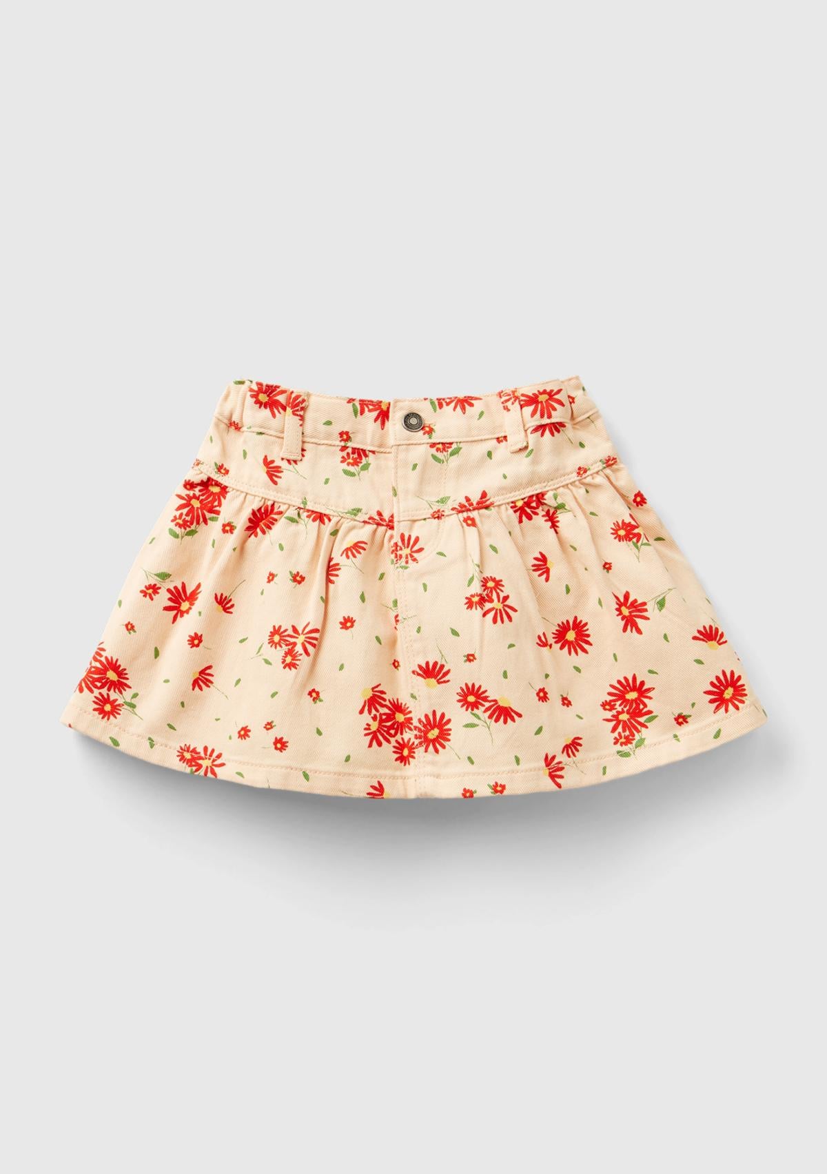 Kız Çocuk Açık Pembe Mix Tamamı Desenli Kemer Delikli Pileli Etek