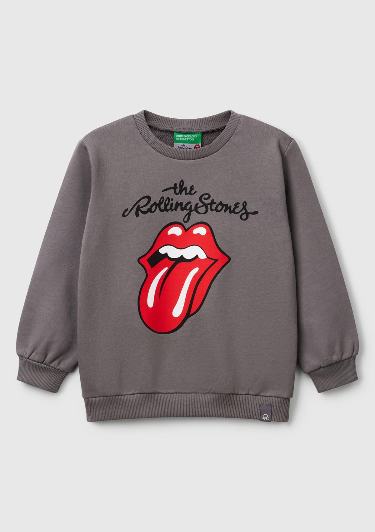 Kız Çocuk Antrasit Rolling Stones Baskılı Etiket Logolu Bisiklet Yaka Sweatshirt