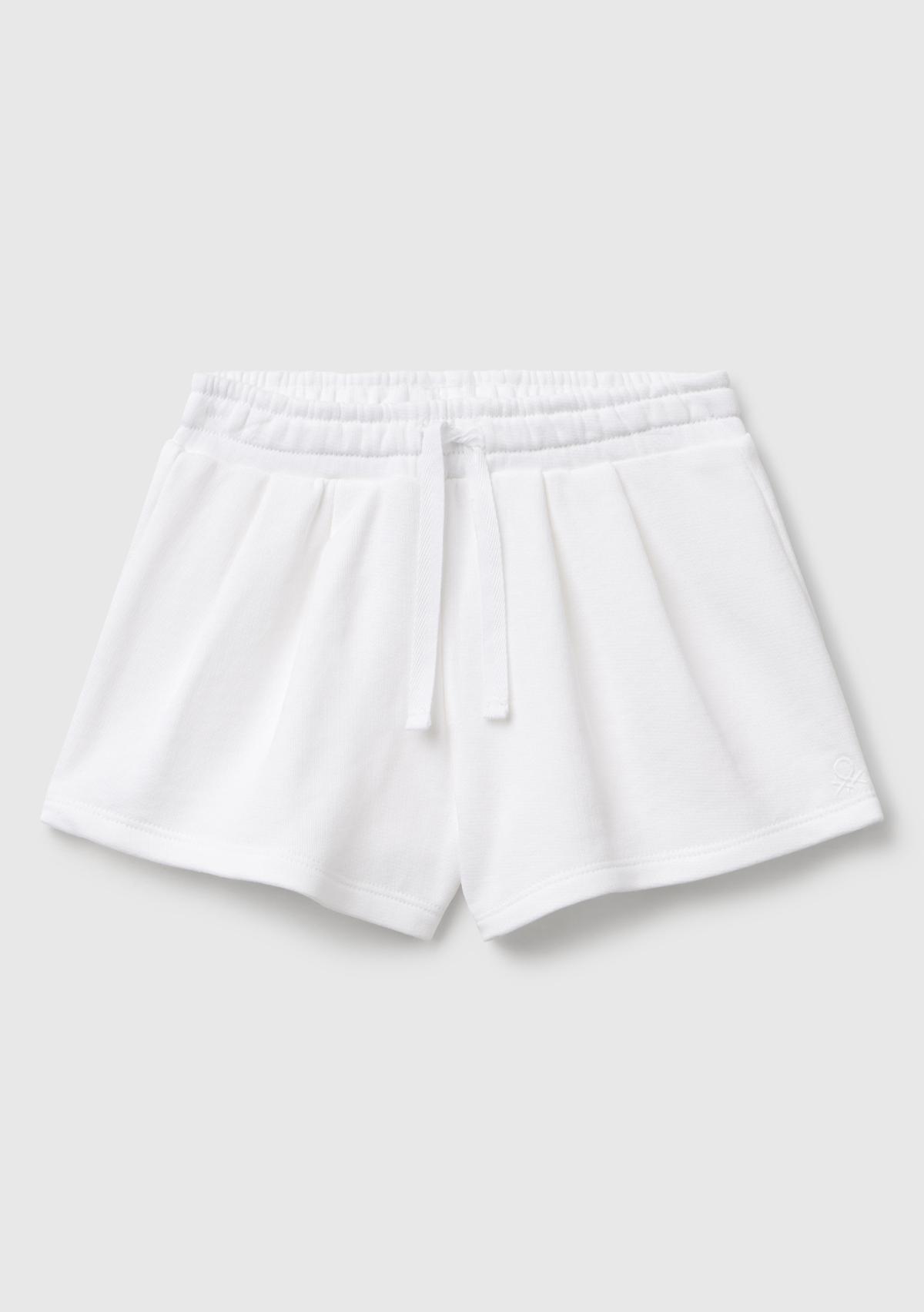 Kız Çocuk Beyaz Benetton Logo İşlemeli Beli İpli Şort