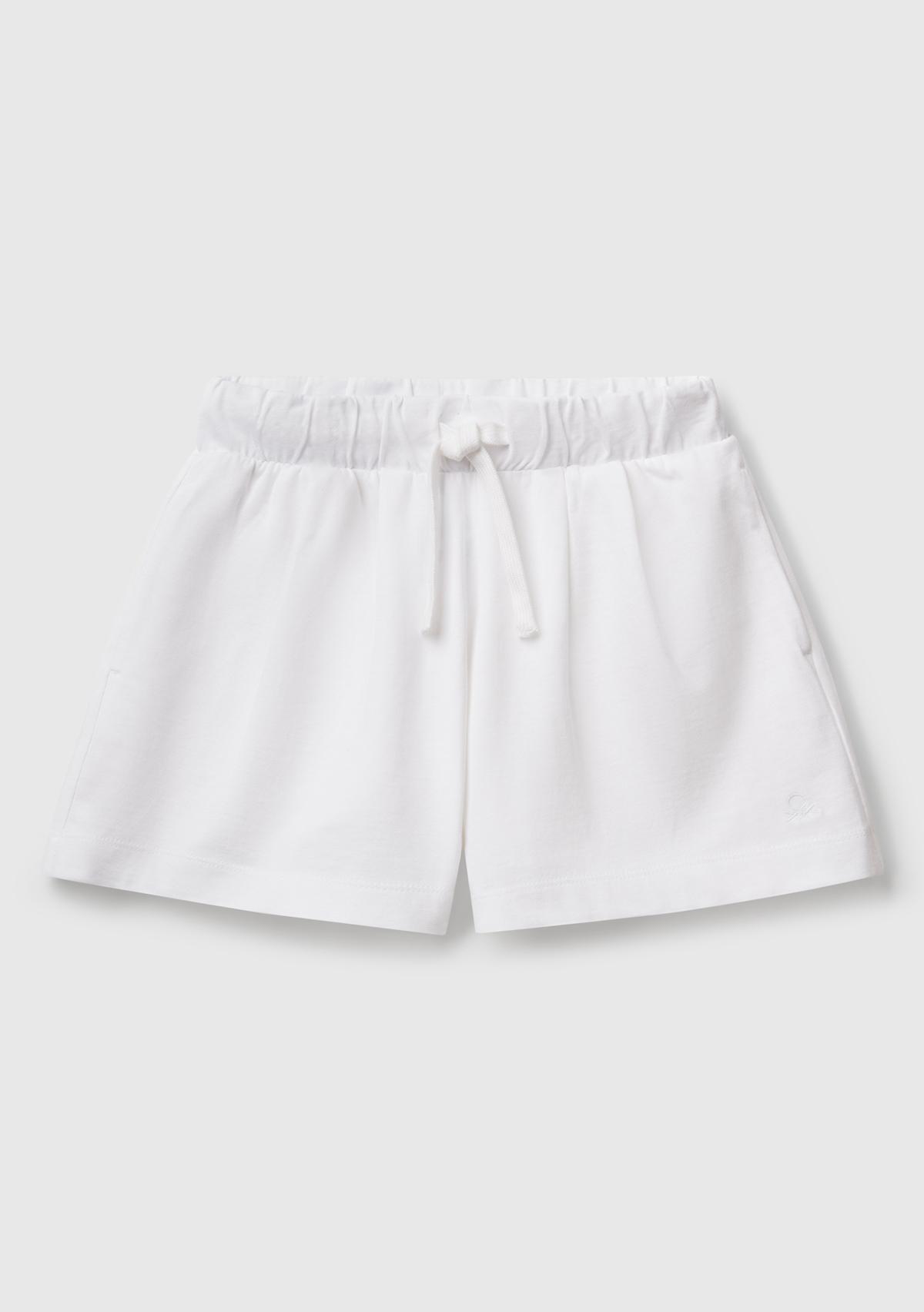 Kız Çocuk Beyaz Logo İşlemeli Beli İpli Şort
