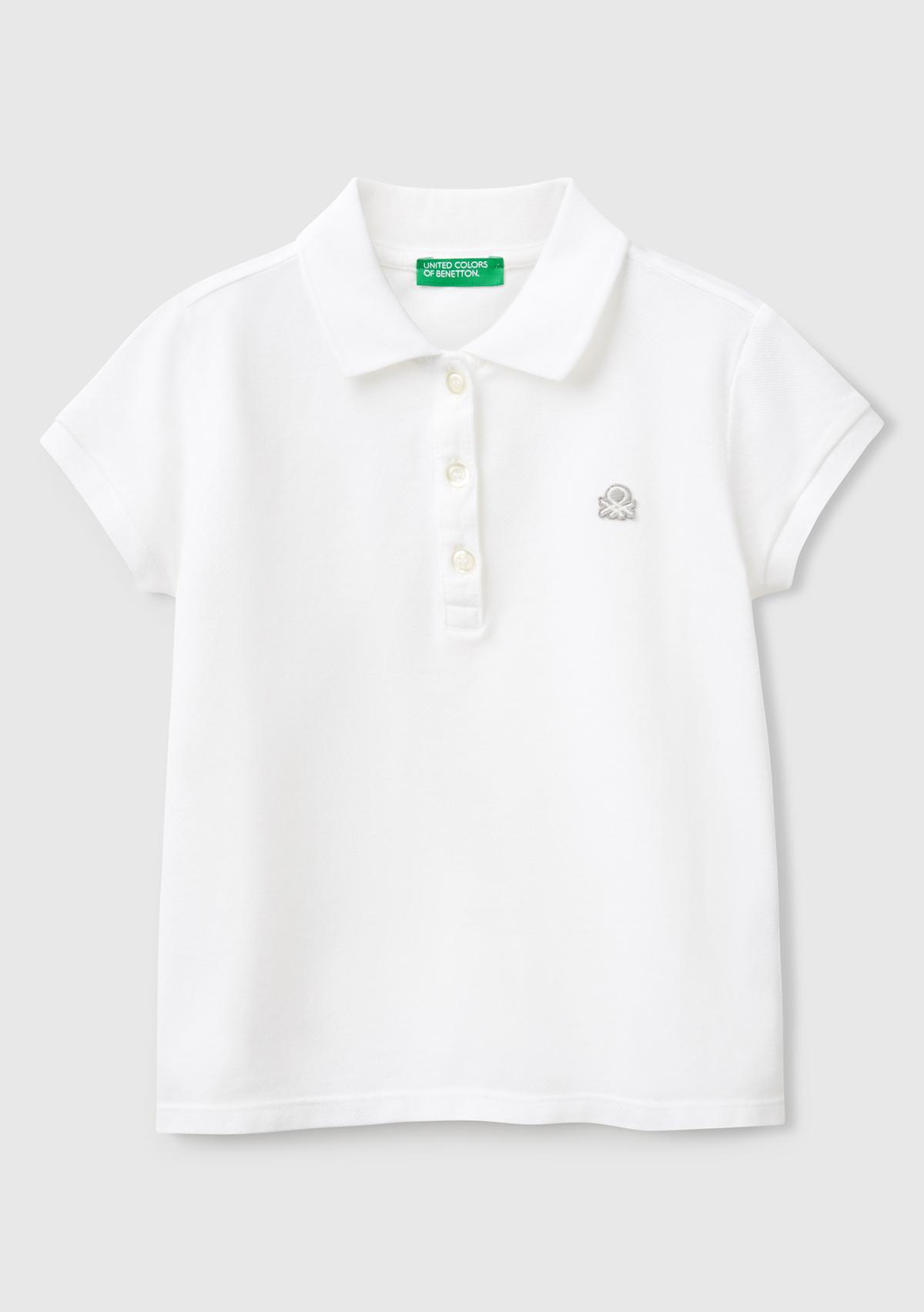 Kız Çocuk Beyaz Logolu Pike Polo T-Shirt