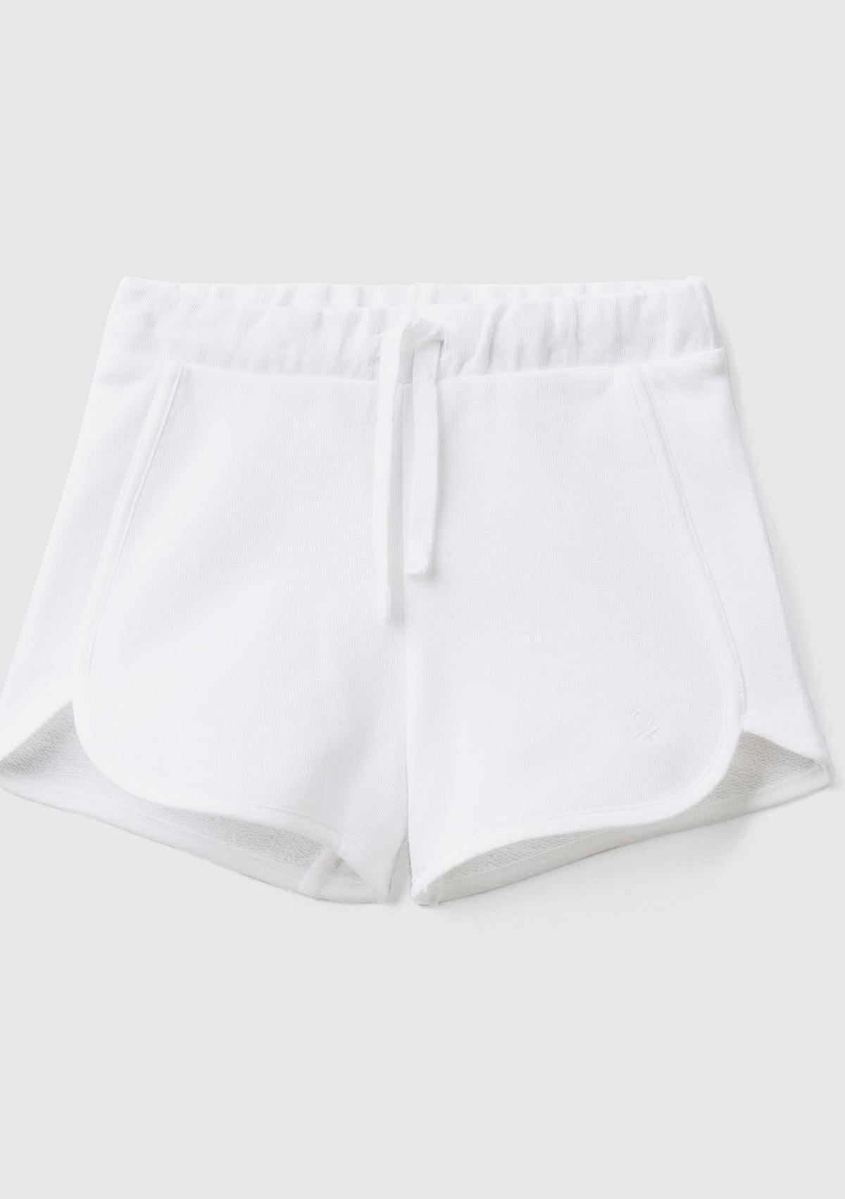 Kız Çocuk Beyaz Logolu Sweat Şort