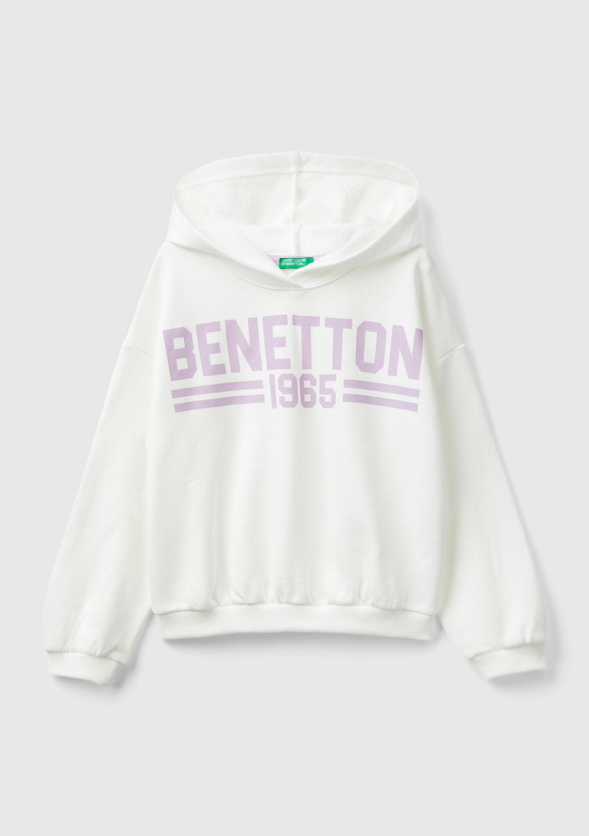 Kız Çocuk Beyaz Önü Su Bazlı Logo Baskılı Kapüşonlu Sweatshirt