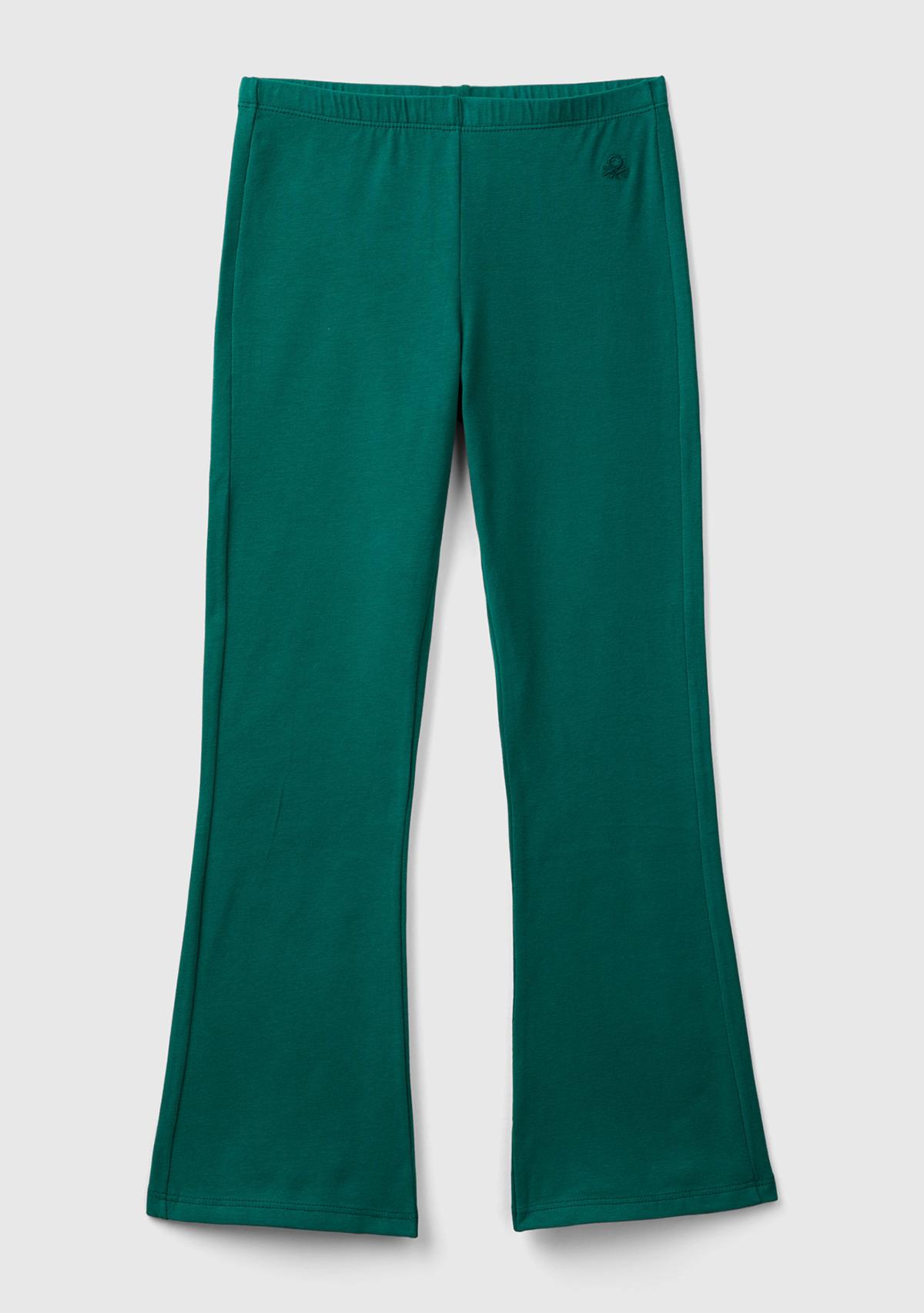 Kız Çocuk Çam Yeşili Geniş Paça Logo Detaylı Tayt