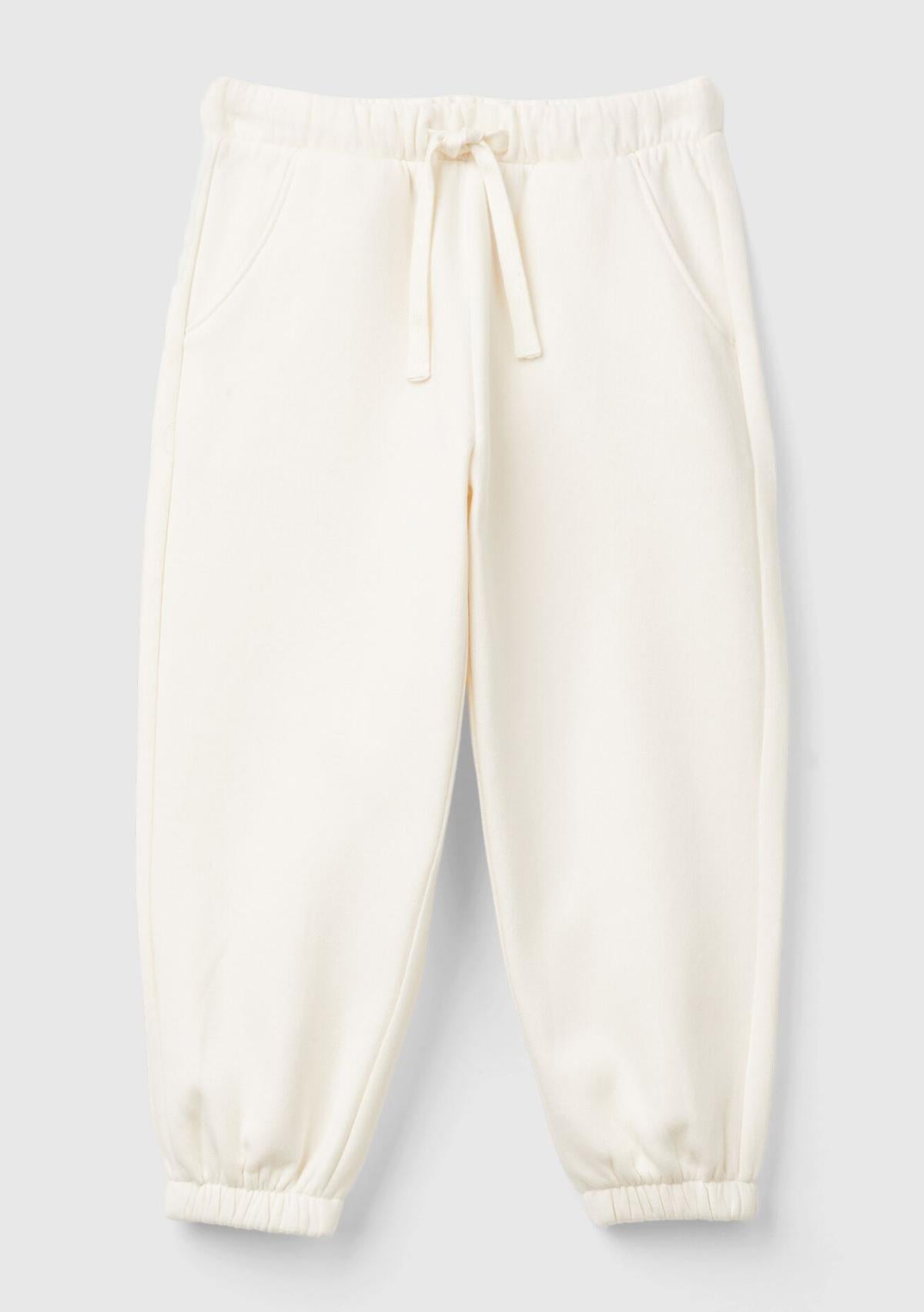 Kız Çocuk Ekru Arkası Logo Detaylı Beli Paçası Lastikli Büzgü İpli Eşofman Altı
