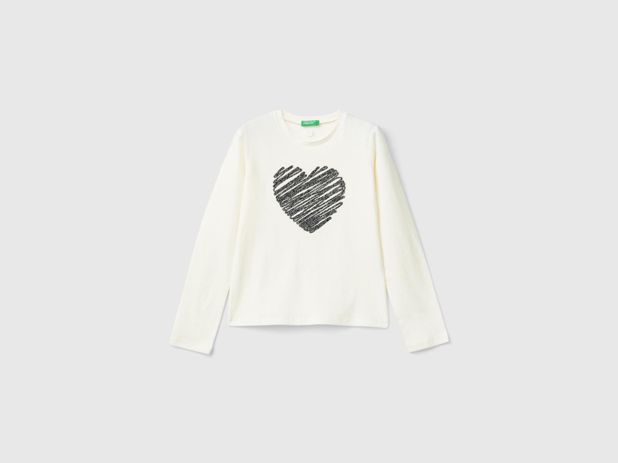 Kız Çocuk Ekru Arkası Logo Detaylı Önü Grafik İşlemeli Uzun Kollu T-Shirt