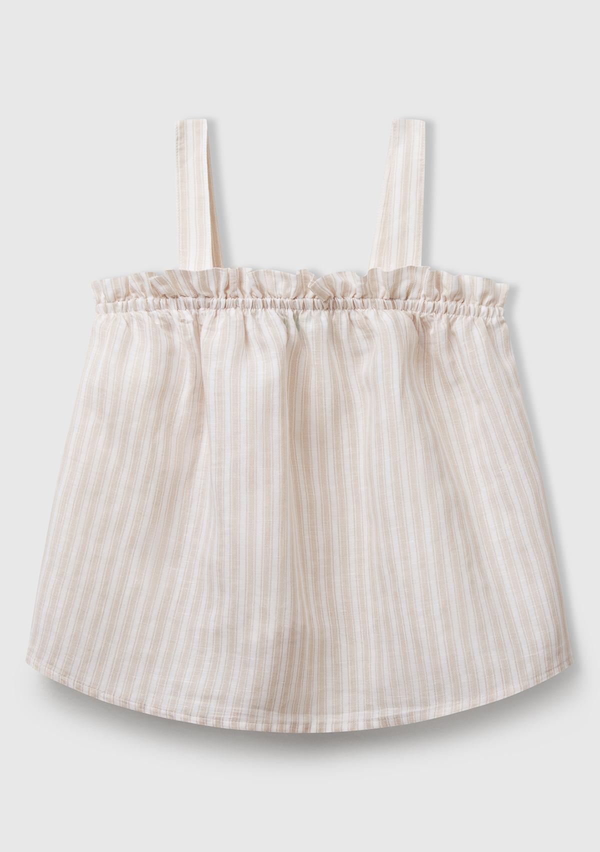 Kız Çocuk Ekru Keten Karışımlı Tamamı Desenli Fırfırlı Askılı Üst
