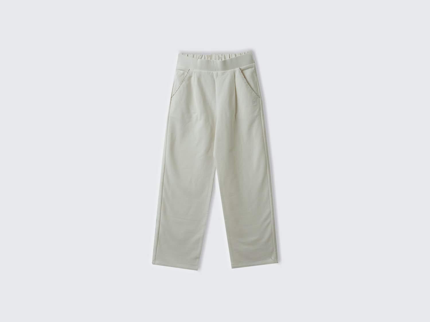 Kız Çocuk Ekru Önü Cepli Arkası Elastik Belli Düz Paça Eşofman Altı