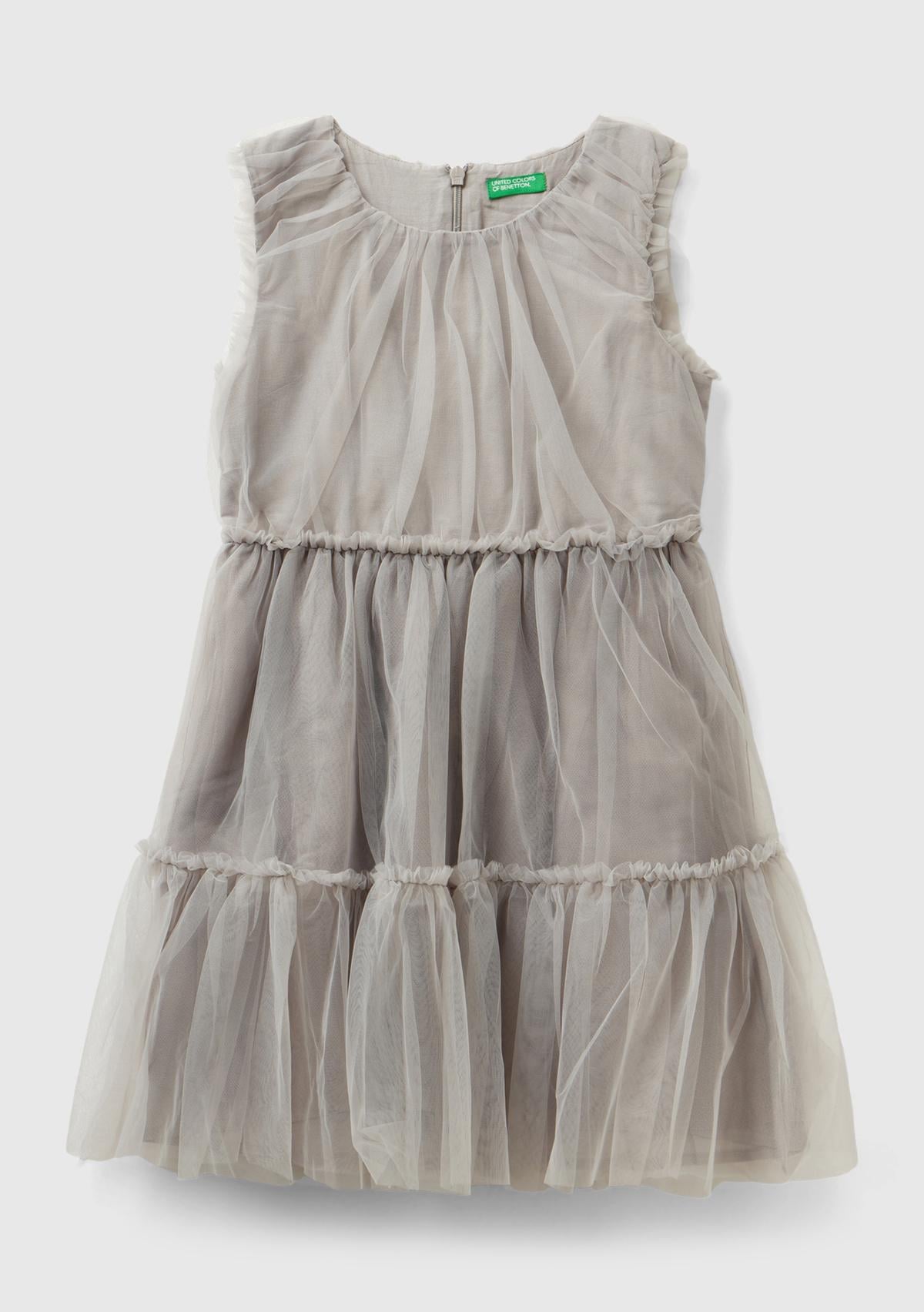 Kız Çocuk Füme İç Astarlı Kolsuz Tül Elbise