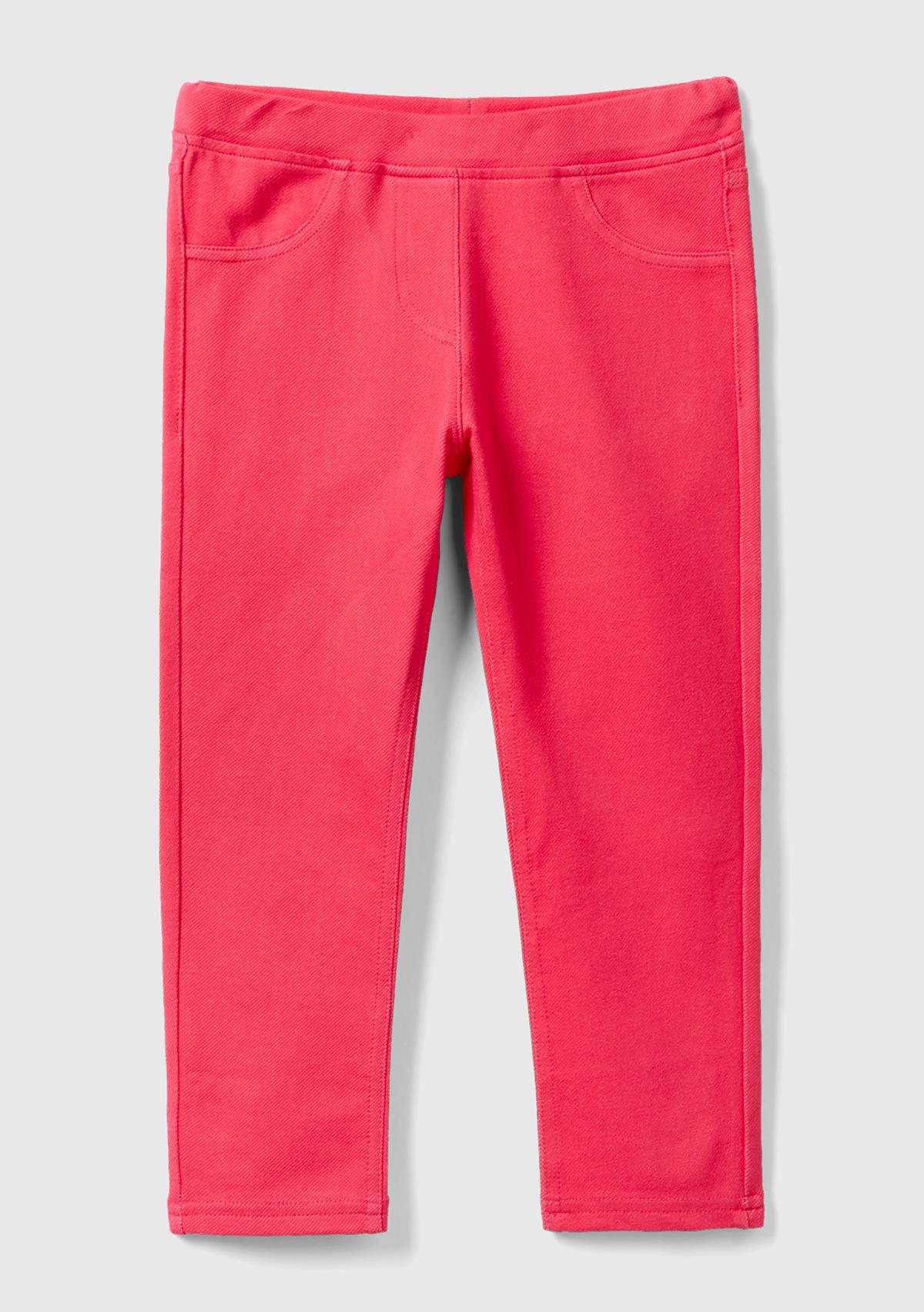 Kız Çocuk Fuşya Arkası Logo Detaylı 4 Cepli Slim Tayt Pantolon