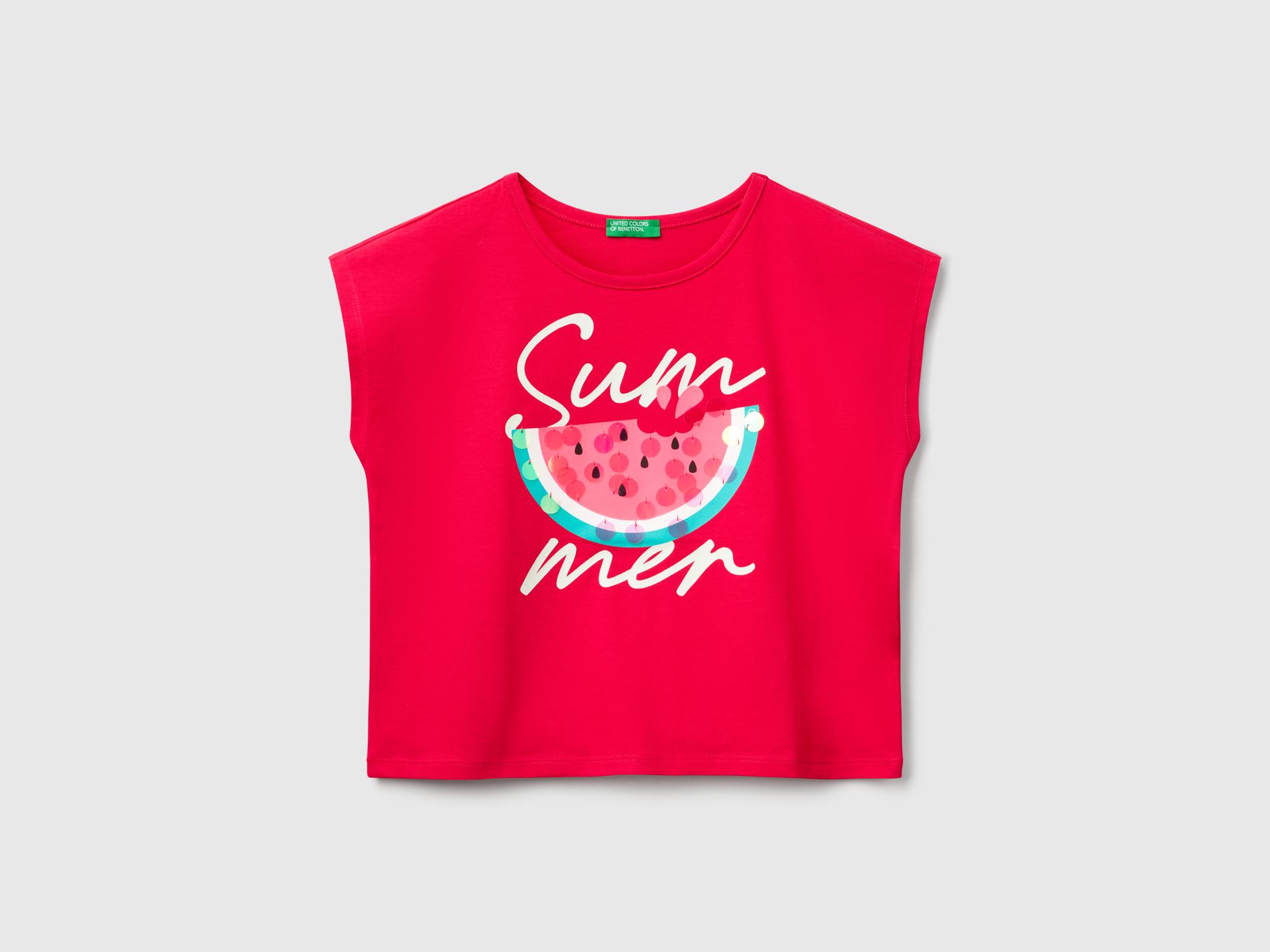Kız Çocuk Fuşya Baskılı Payet İşleme Detaylı T-Shirt