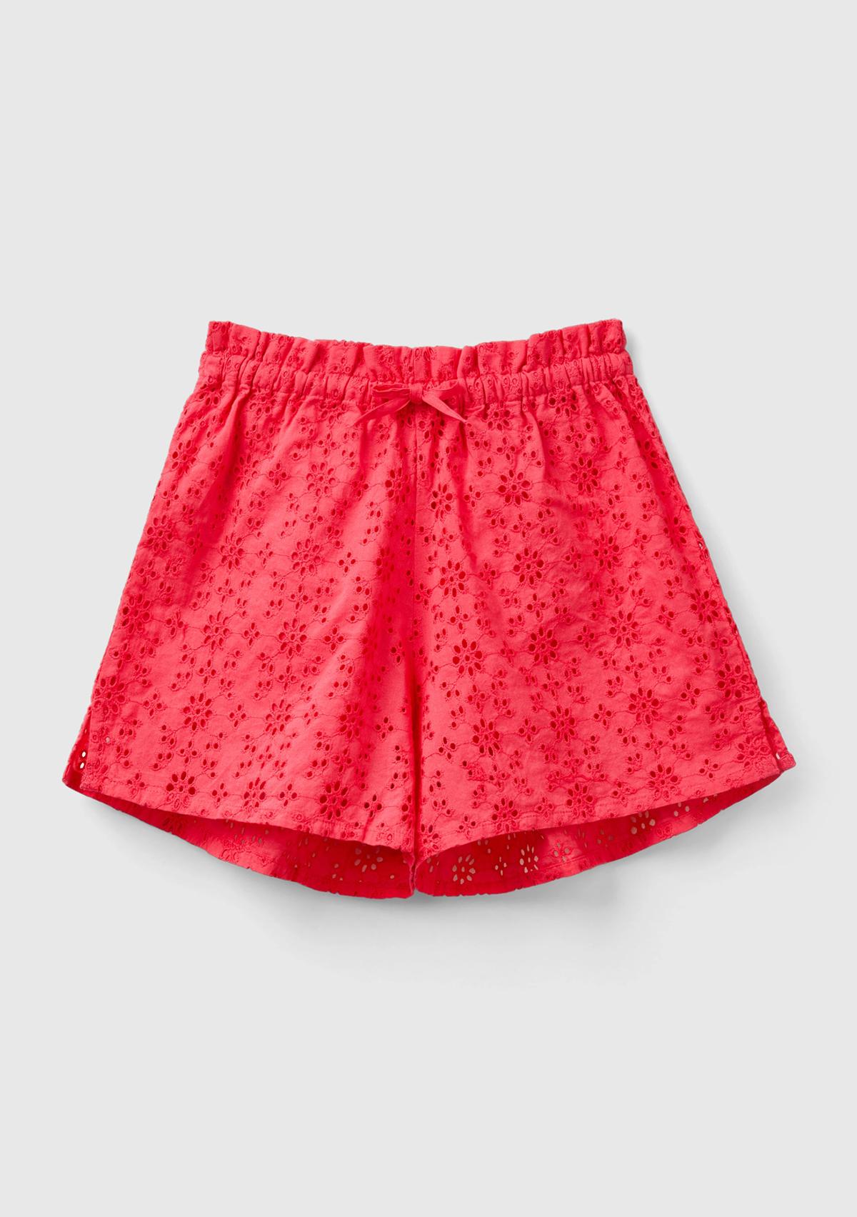 Kız Çocuk Fuşya Elastik Bel Bantlı Yırtmaç Detaylı İşlemeli Şort