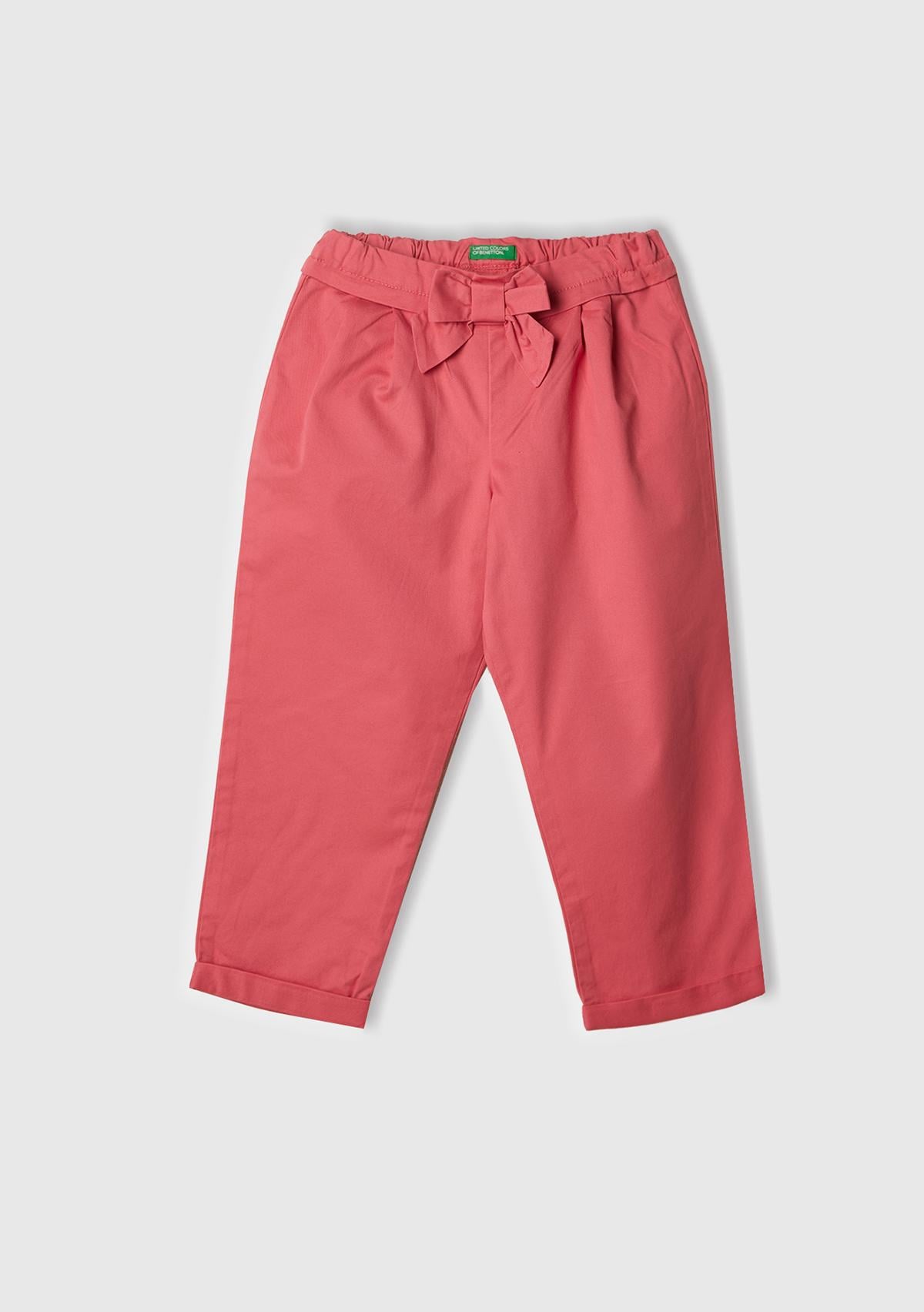 Kız Çocuk Fuşya Logo Detaylı Beli Ayarlanabilir Lastikli Fiyonklu Pantolon