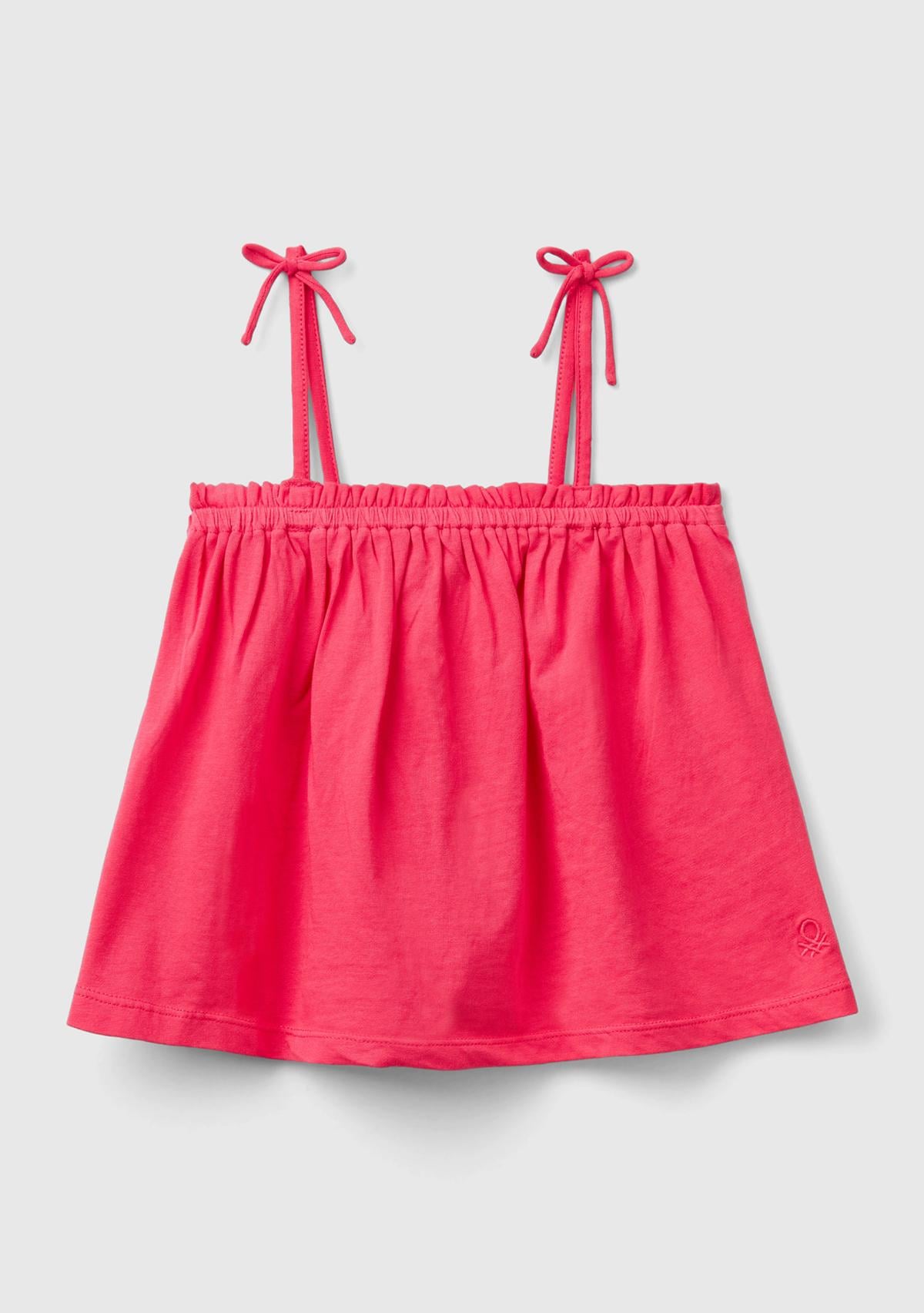 Kız Çocuk Fuşya Önü Logo İşlemeli Fiyonk Detaylı İnce Askılı Bluz