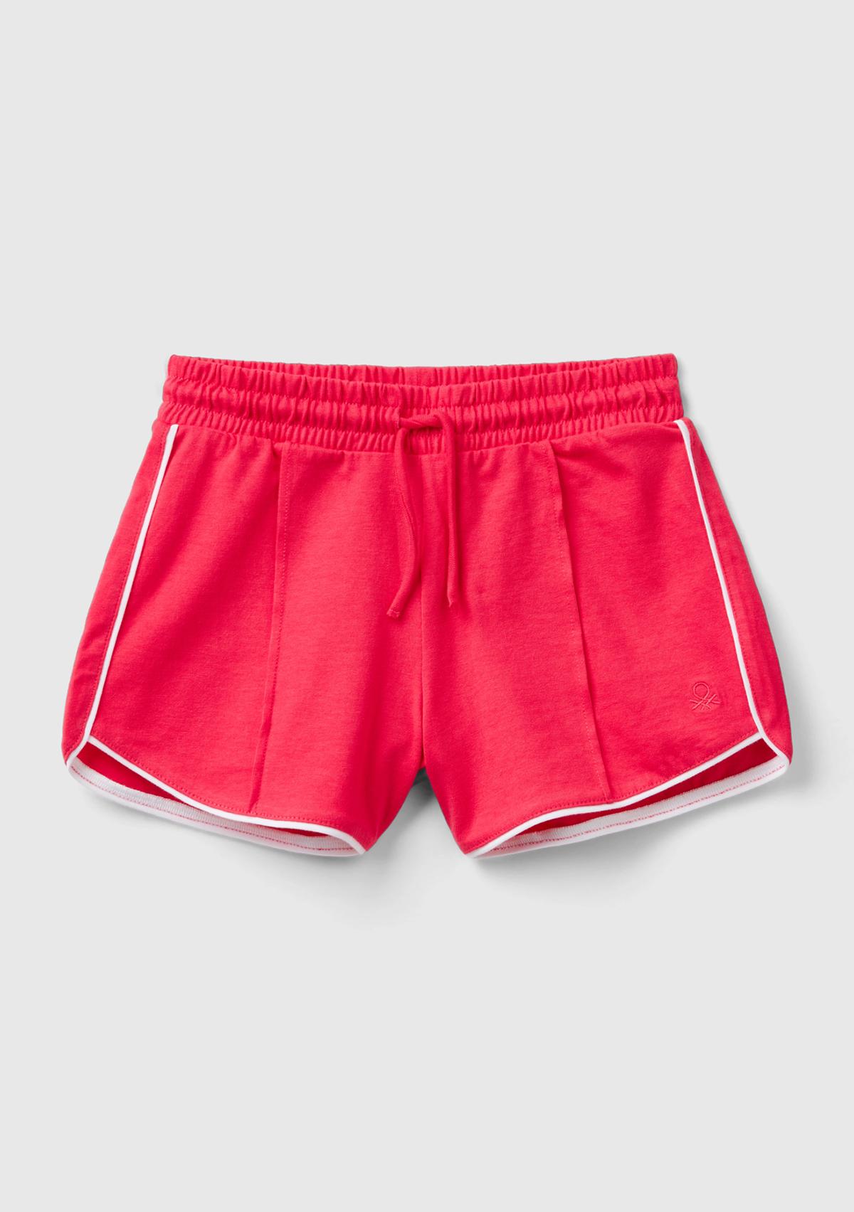 Kız Çocuk Fuşya Önü Logo İşlemeli Kontrast Şerit Detaylı Beli Büzgülü Şort