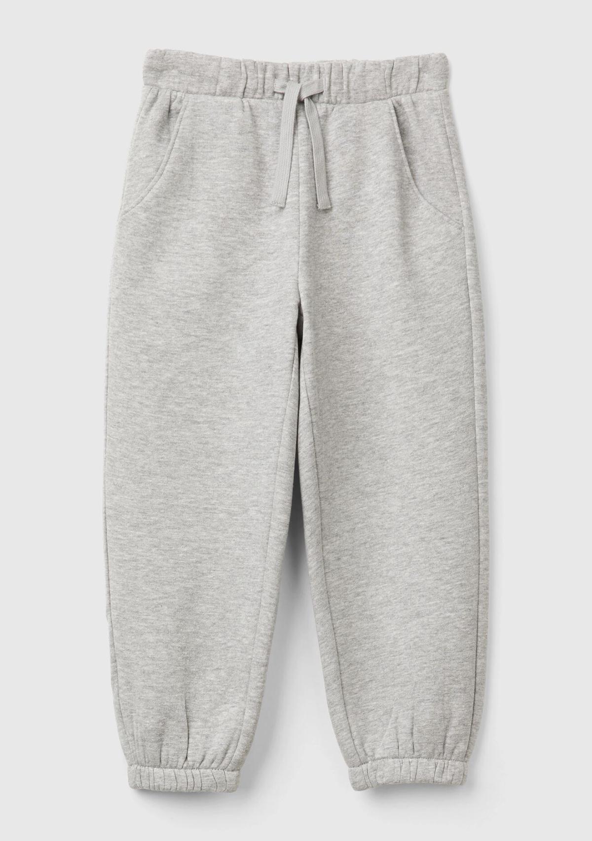 Kız Çocuk Gri Melanj Arkası Logo Detaylı Beli Paçası Lastikli Büzgü İpli Eşofman Altı
