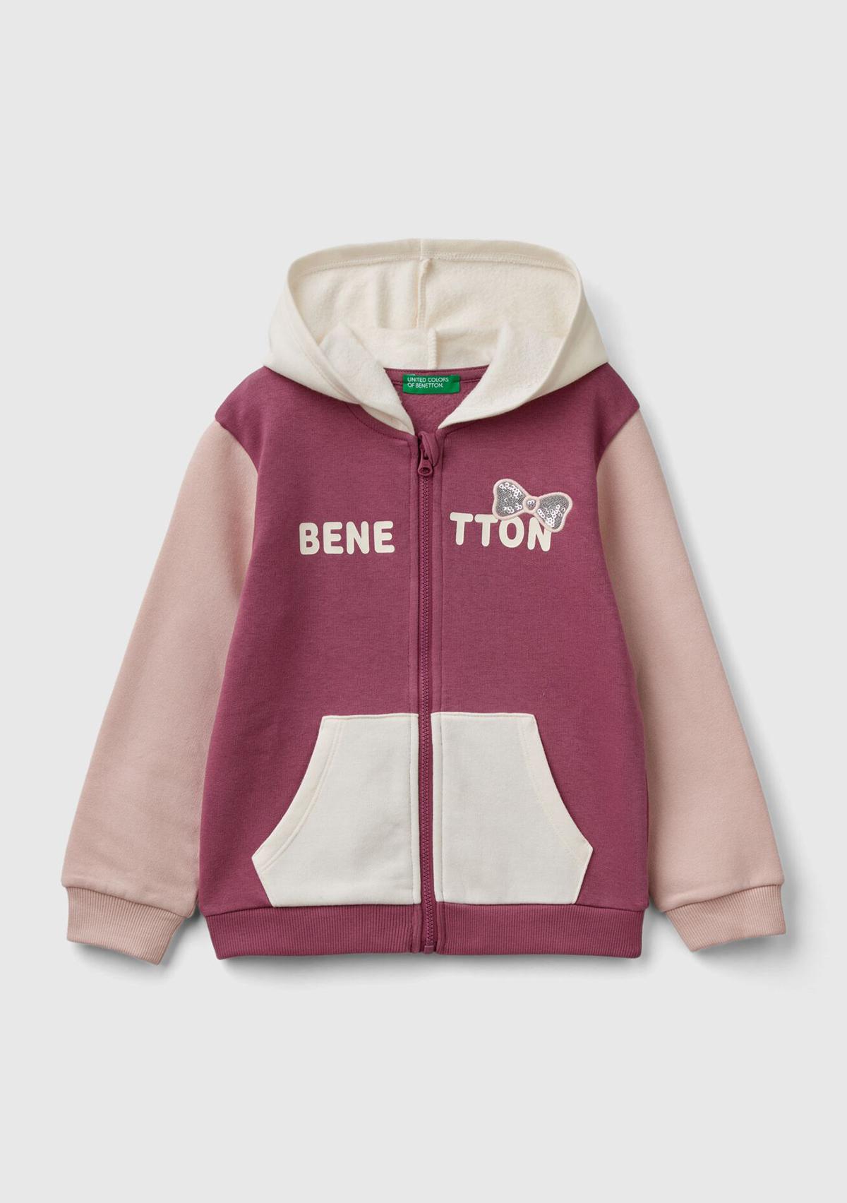 Kız Çocuk Gül Kurusu Mix Pamuk Karışımlı Fermuarlı Kapşonlu Logolu Sweatshirt