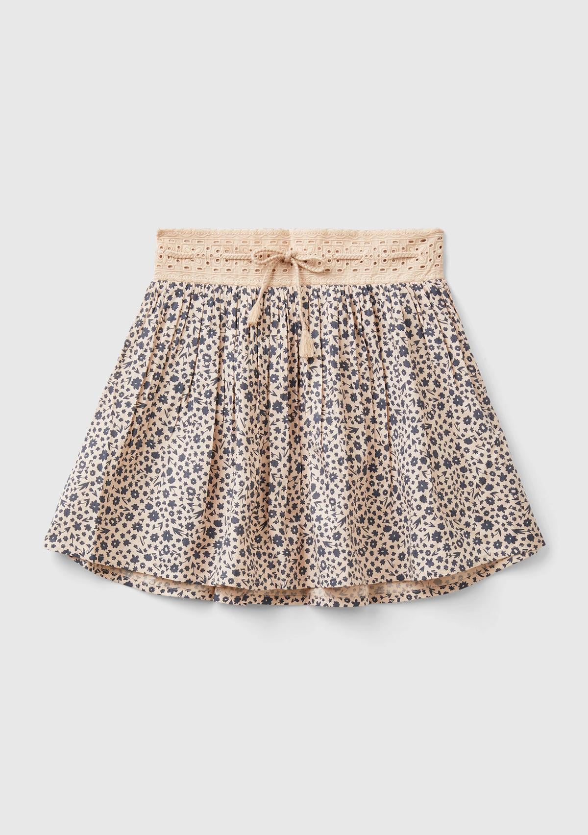 Kız Çocuk Kahverengi Mix Esnek Belli Büzgü İpli Desenli Etek